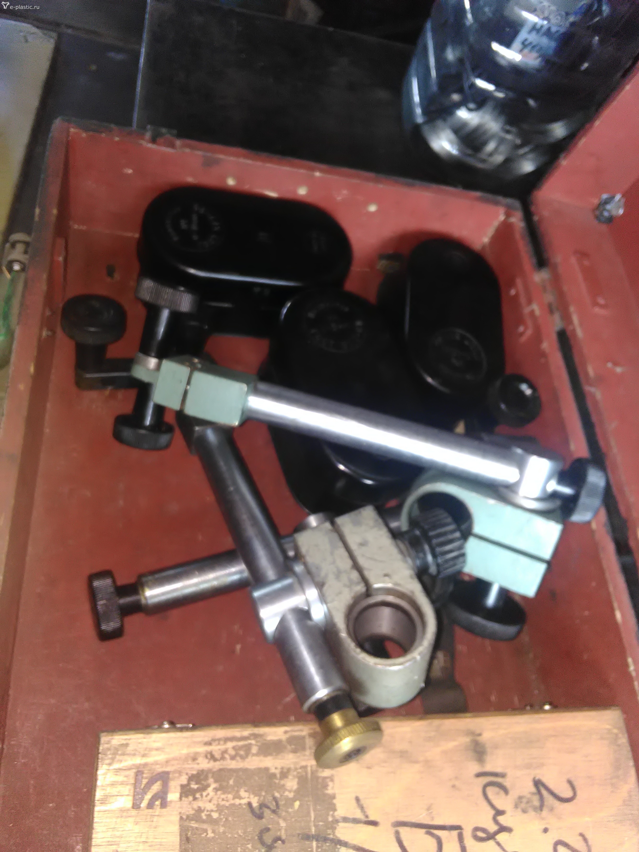 Изготовили штатив.Груз-блин на полу,штанга-труба,зажим с индикатором.