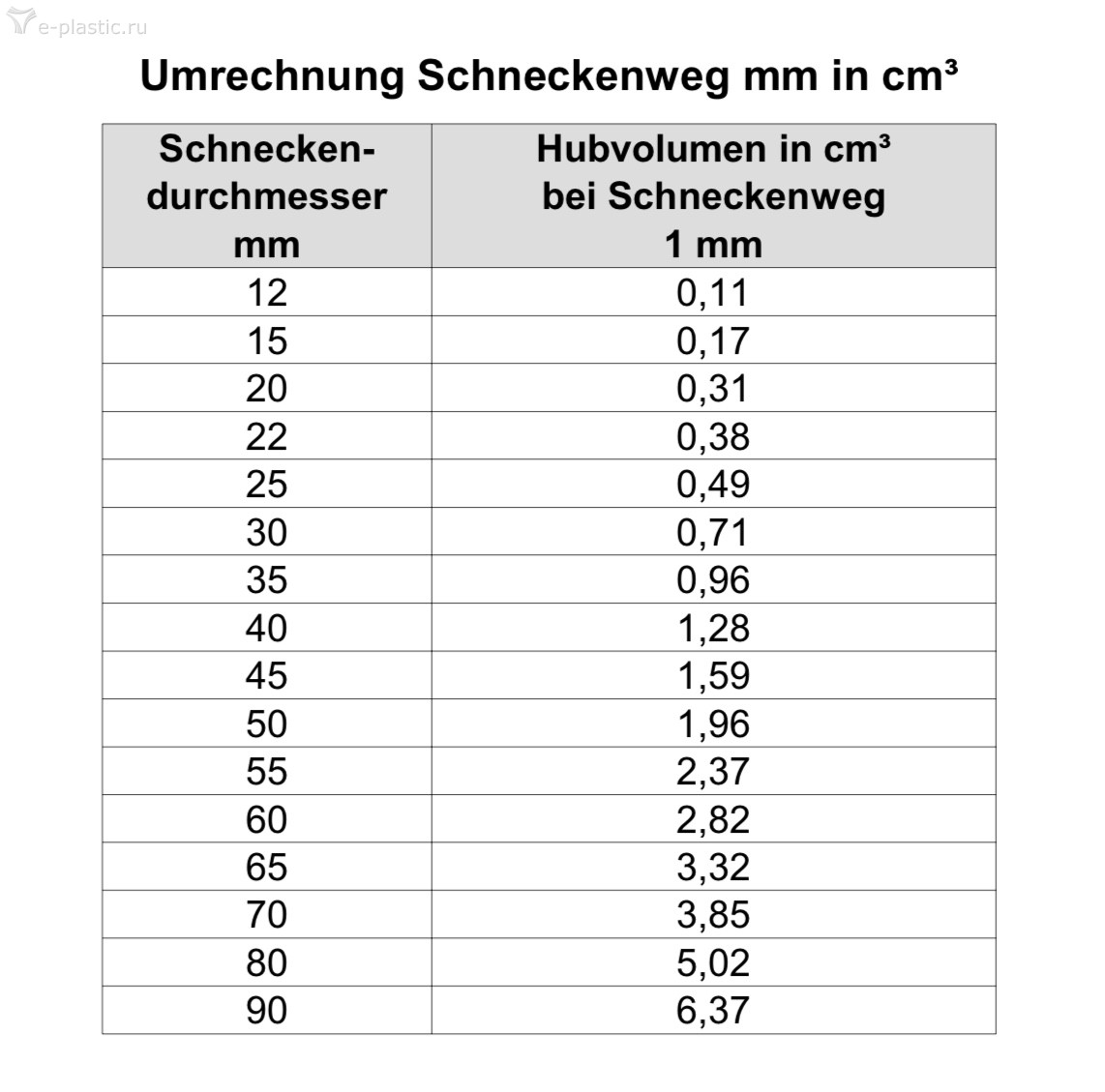 А разве от диаметра шнека не зависит соотношение мм к мм³?
