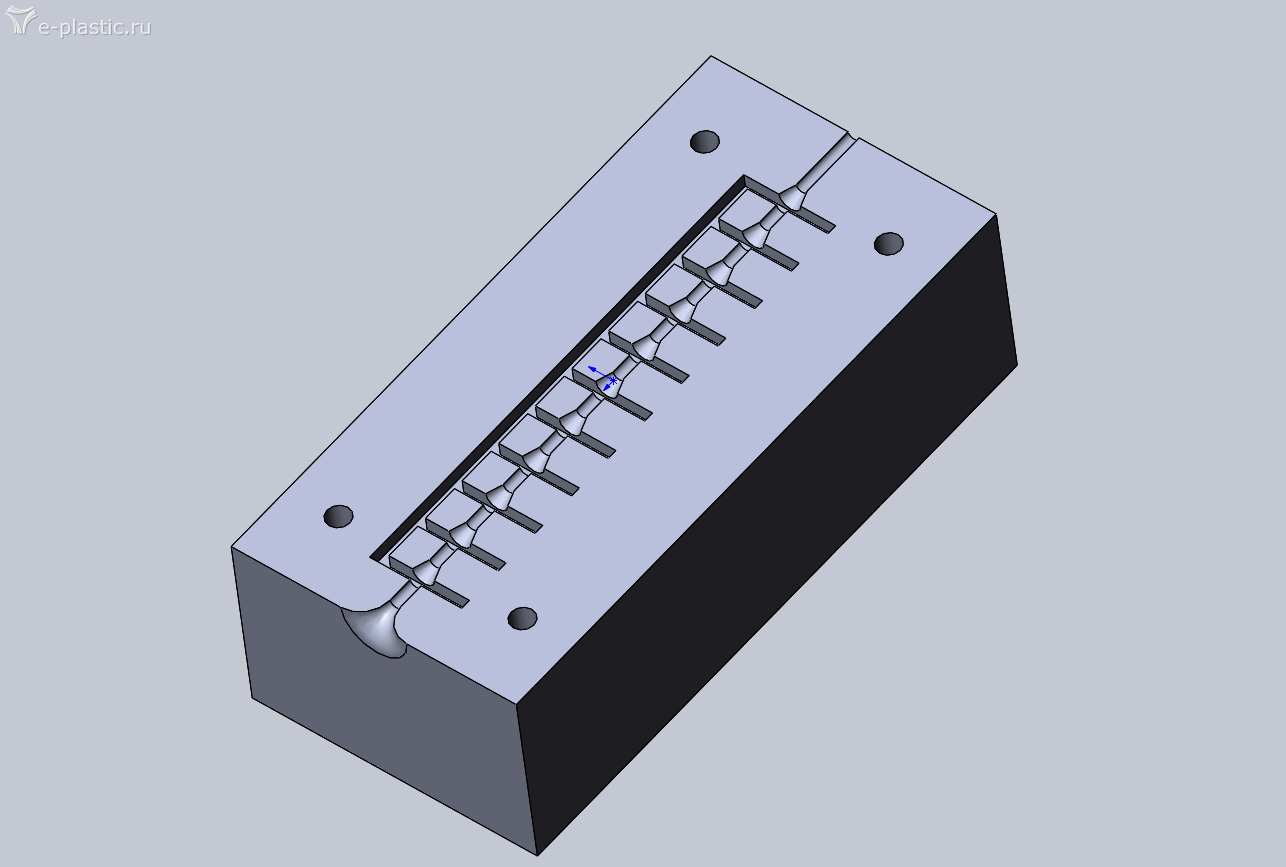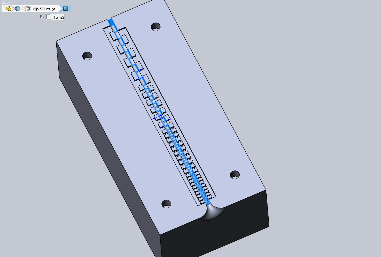 Второй вариант сейчас в работе и выглядеть будет как на втором вложении. Постарался избавиться от кольцевидных вакуумных каналов и сделал их в виде сегментов с изменяемой шириной. Ширина от 0,5мм в начале до 4 мм в конце. Общая длина 130 мм.