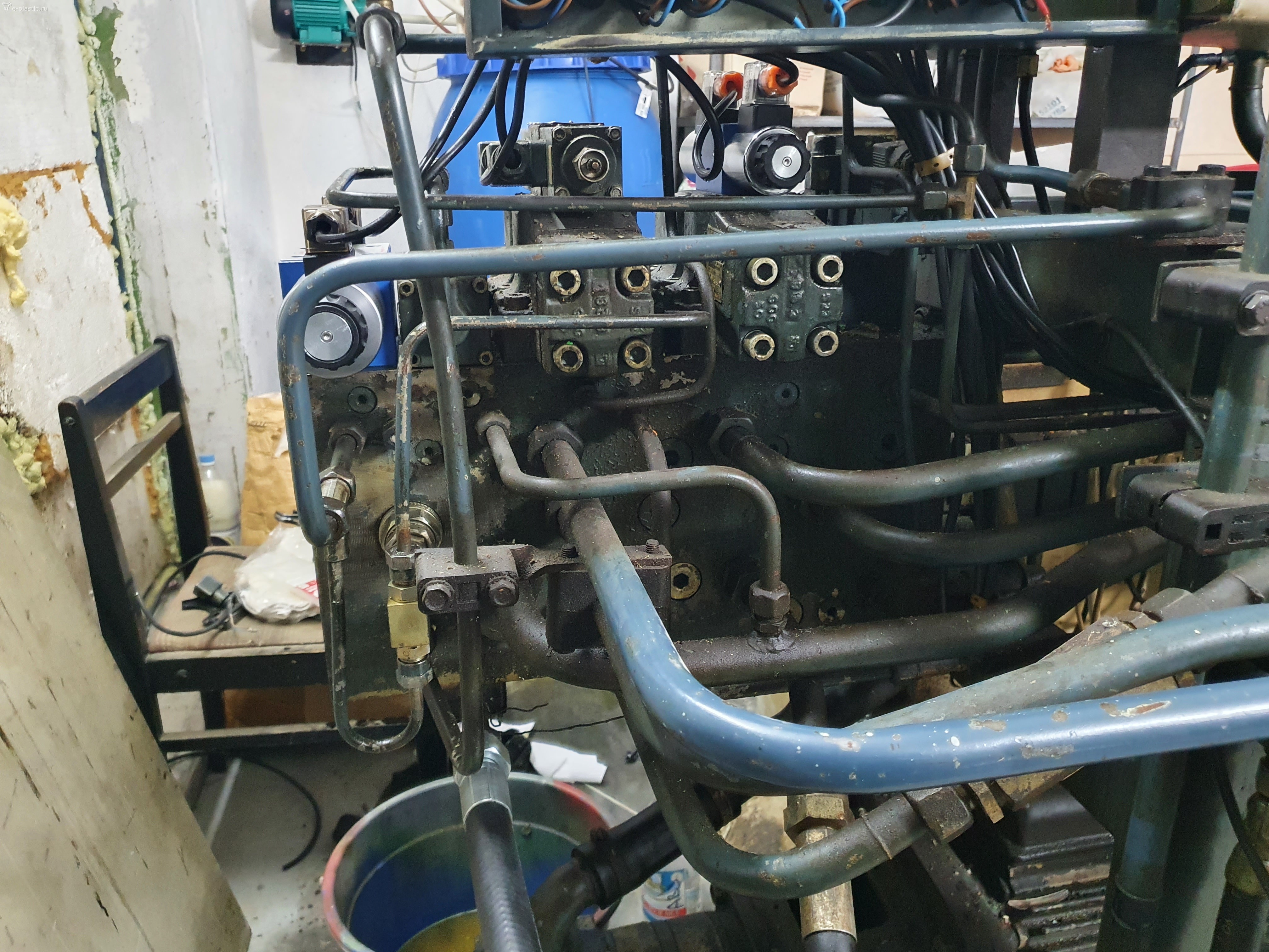 Ага, привет. Этот вопрос разбирали очень подробно. Но не эту модель тип Куаси. Часть информации можно использовать. Наскоком решить вопрос получается не часто. 1) Что бы облегчить работу сейчас и в будущем. Это установить контроль давления прижима сопла, которого там нет. Это участок от штоковой полости цилиндра прижима сопла и до обратного управляемого клапана гидравлического замка. Который в момент впрыска герметично закрыт. И давление из цилиндра будет падать только в случае, изношенных уплотнений в цилиндрах и не герметичном замке ( поршень - седло) Как установить манометр? Просто. Либо в разрыв соединения магистрали установив тройник. Или Я просто сверлил переднию крышку цилиндра прижима сопла напротив штуцера , нарезал метчиком резьбу и вкручивал манометр на прямую или через переходник с конической резьбой вроде 3/8". Резал и М12х1.5. И дюймовую. И видел что происходит с давлением прижима сопла . Че зря машину мучить и сырьем горелым дышать и переводить попусту. Поставил манометр, жмешь кнопку прижима сопла, смотришь на манометр при включенном y 271 и нагрузке насоса. Регулируешь . Что то должно быть. Потом думаем и приступает к ремонту. Но вначале манометр. Метод тыка нам ещё пригодится когда нибудь потом. Как поставите манометр дайте знать. По другому не работаем. Пришлите фото установленного манометра. Иначе ждите других помощников. Все строго.