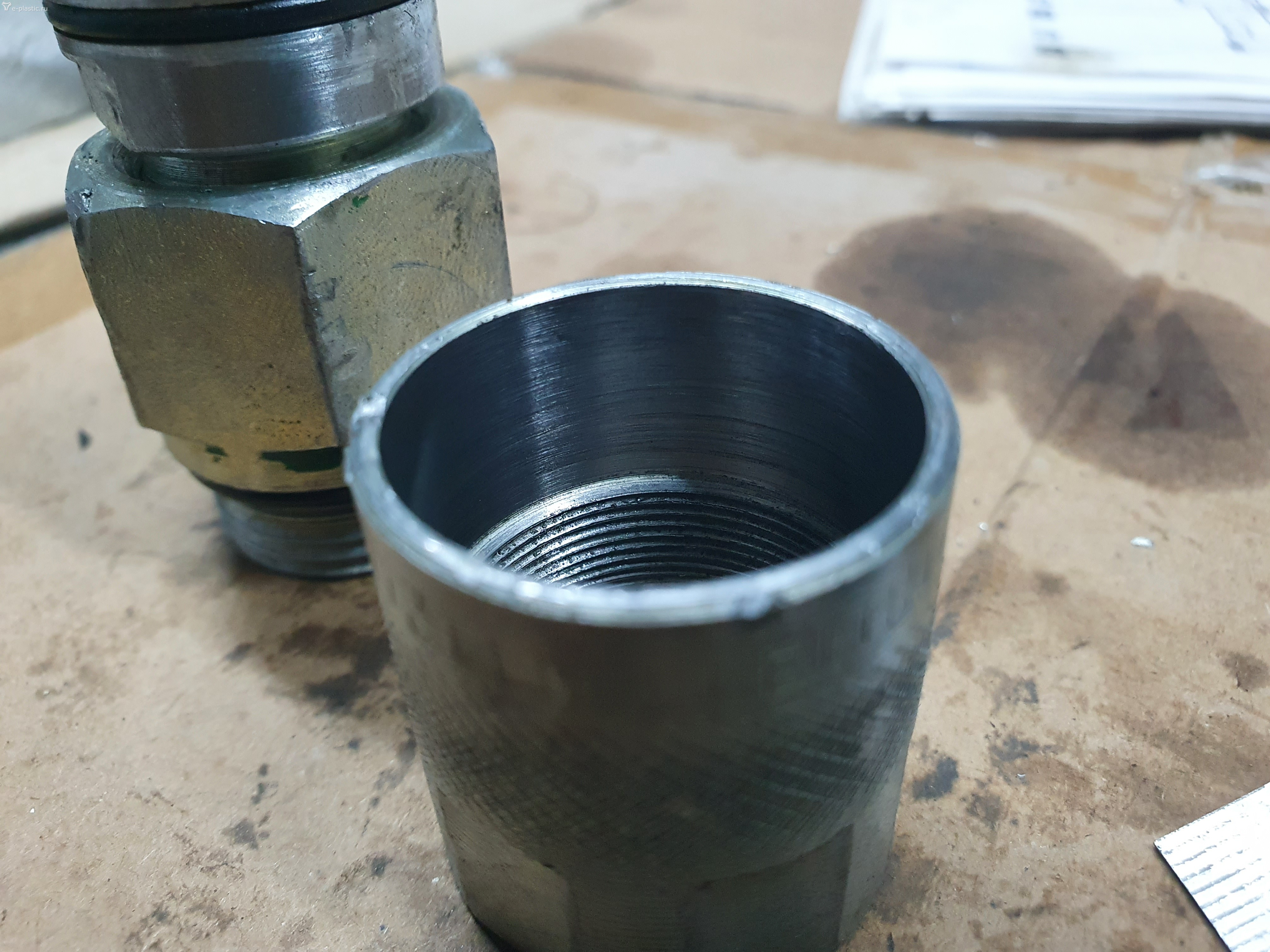 1) Новая гильза. Купили кусок хонингованной трубы для гидроцилиндров, проточили резьбы и посадки по старому образцу.