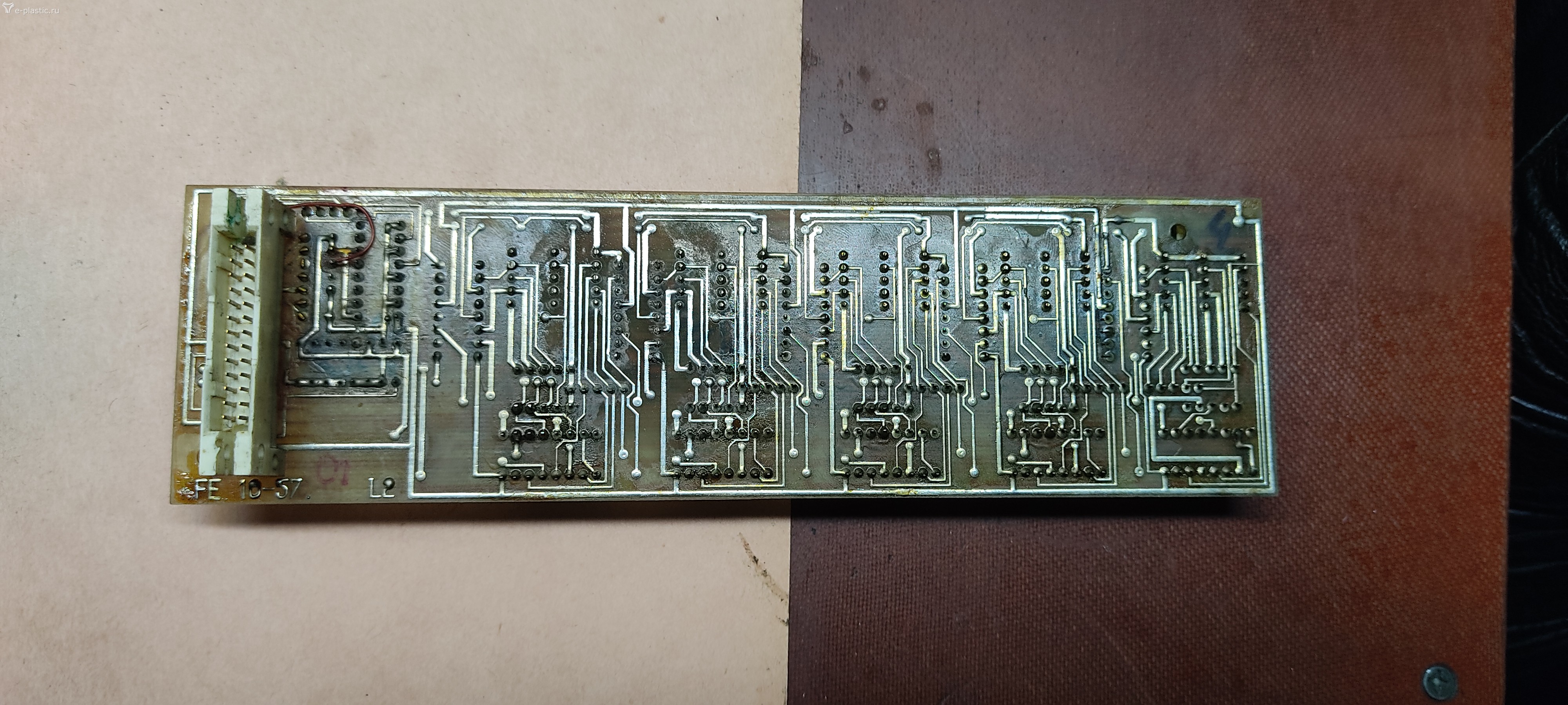 Следующий шаг. Делаем эскиз платы декадных переключателей на бумажке (в архиве - готовый), находим в выложенных на форуме материалах схему платы таймеров данной модели станка (в архиве - уже найдено), определяемся с типом микросхем (ТТЛ - КМОП), а далее - самостоятельно. Предположу, что микросхемы DD1-DD10 - регистры 561ИР9. Но это не точно.