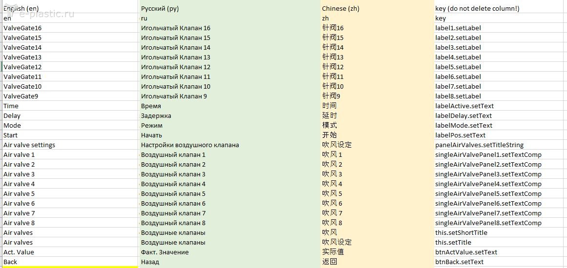 В выложенных файлах есть не заполненная колонка "Russian (ru)".
