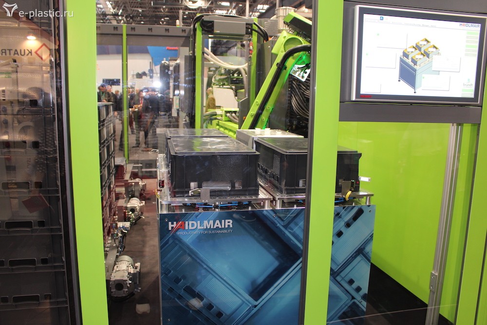 Ящики от Хатьян. "ТПА без особенностей, покрывающий 98% потребностей в литье". У Энгель Ящики от Хайдлмаера остывают и усаживаются на четырехгнездной матрице, далее штабелируются KUKA Порционная тарелка от Tederic (вверх ногами)))