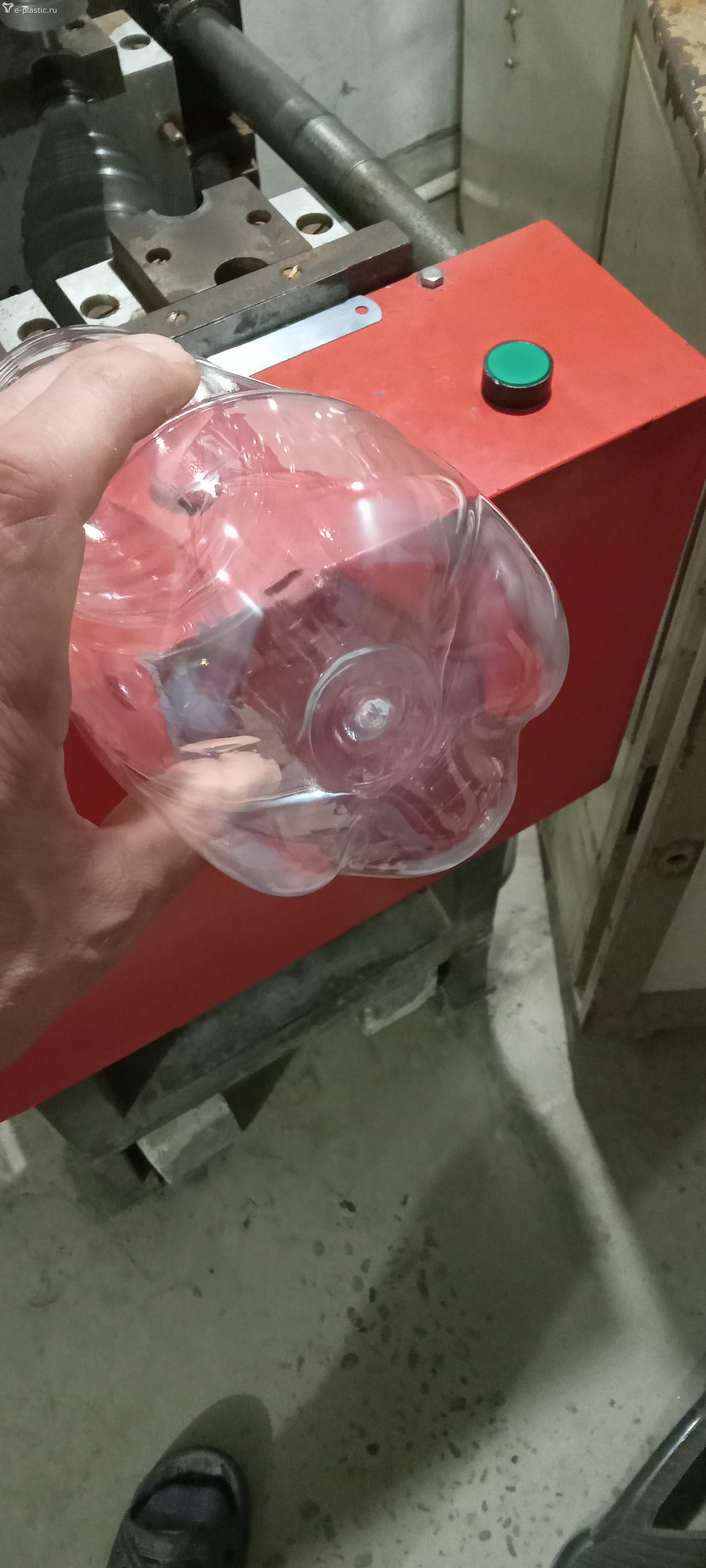 Никак не настроим выдув 2л бутылки. Станок п/автомат Стандарт плюс, печь на лампах. До этого несколько лет выдували 1,5л бутылку. После приобретения автомата поставили Прессформу 1л, все быстро настроили. Сейчас взяли б/у прессформу на 2л и никак не настроим, преформа Европласт 32,5гр б/цв. В печи 4 зоны нагрева, задействовано только 3. Пару ламп изначально не устанавливали даже, и все работало. Давление выдува 15-16, ПВ 8. Геркон только на смыкание прессформы, задержка выдува по времени. Вроде как временные параметры подобрали. Брак идет примерно 30%. В основном это складка внутри бутылки.