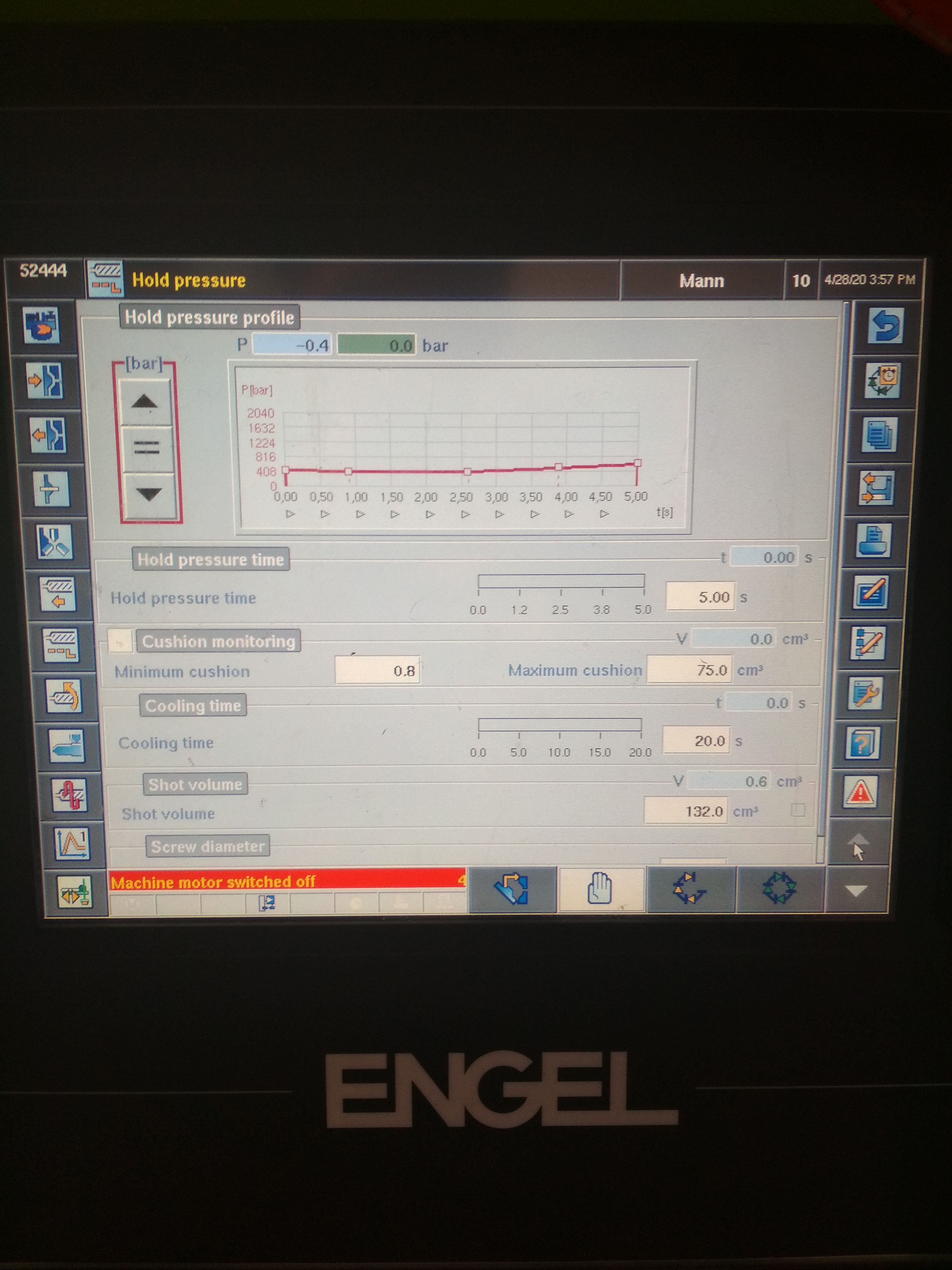 Я всё таки не совсем уверен в заднем положении толкателя. Стоит где-нибудь цифра где он находится в данный момент? Или всё таки отталкиваться от нуля. Это у многих отличается. Но я думаю надо всё таки вводить.