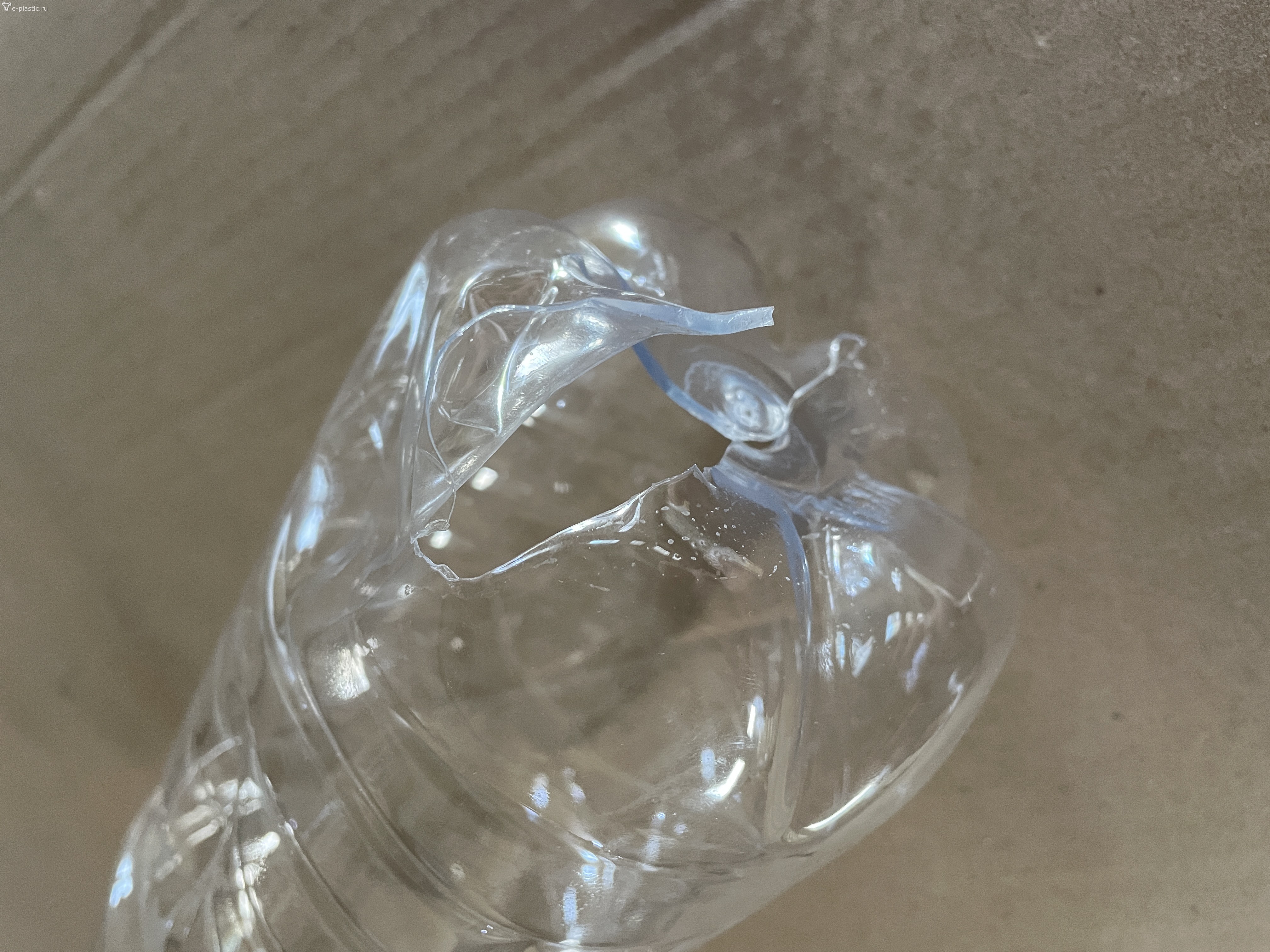 Третья, то же распространенная. Центр донышка, судя по бутылки на фото, у вас не конусом или сферой к верху, а почти горизонтальный. Получается большой плоский, толстый пятак пластика. Из за того что литник не прогрелся и по конусу или сфере не отдал материал в ножки бутылки, вы и имеете этот пятак. При давлении, из за своей жесткости от не может с амортизировать, а просто трескается. В первую очередь надо сильнее греть зону литника на преформе. Если не будет помогать надо донышки доработать. Это быстро и не дорого. Этот пятак, в основном летом, при недостаточном охлаждении донышка, может начать после извлечения бутылки из пресс формы в течении 10-30 секунд, начать выдавливать наружу бутылки. Получаете неваляшку.