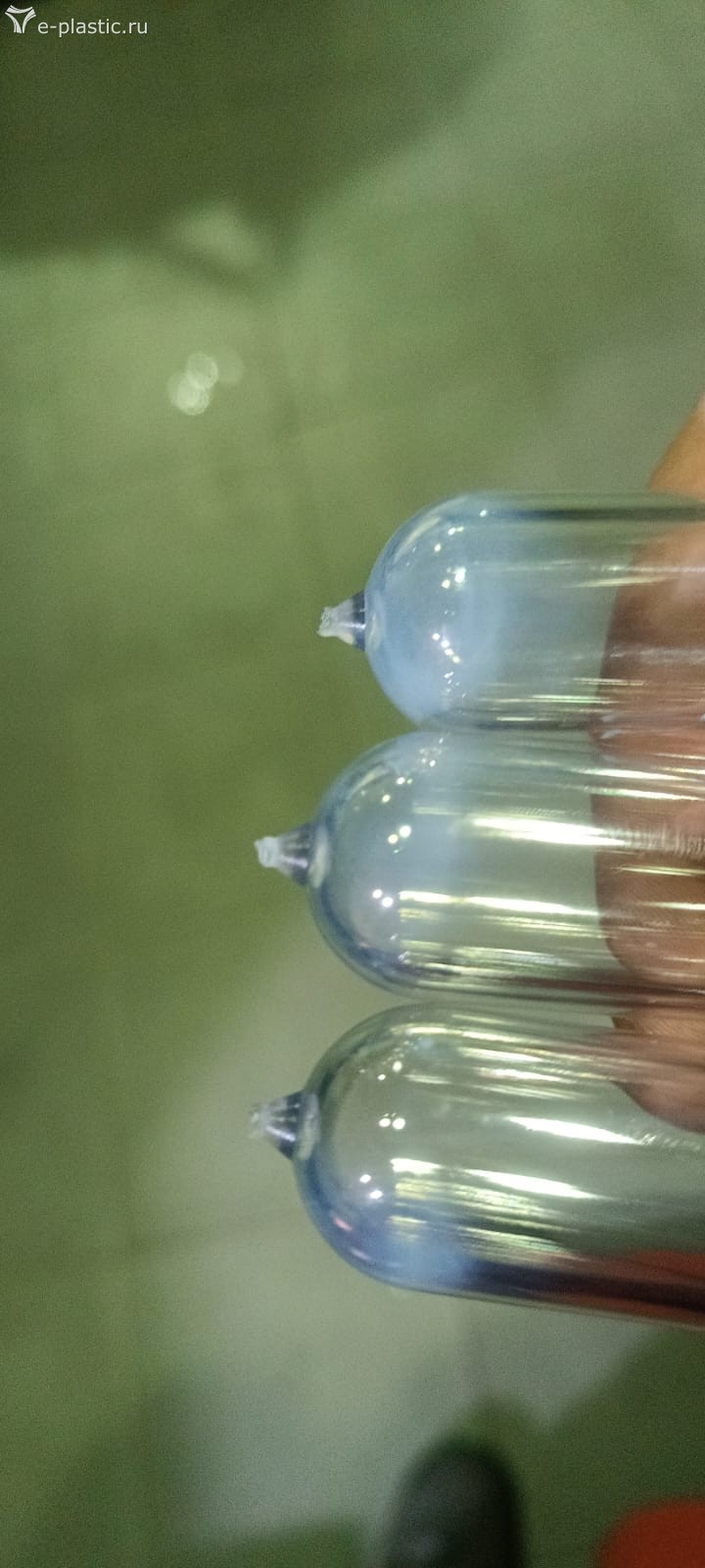 Судя по разной высоте "носиков " , смотрите ГКС. Скорее всего, отрываются кусочки и следуещим циклом стреляют в форму. Поэтому именно начало колбы белое .