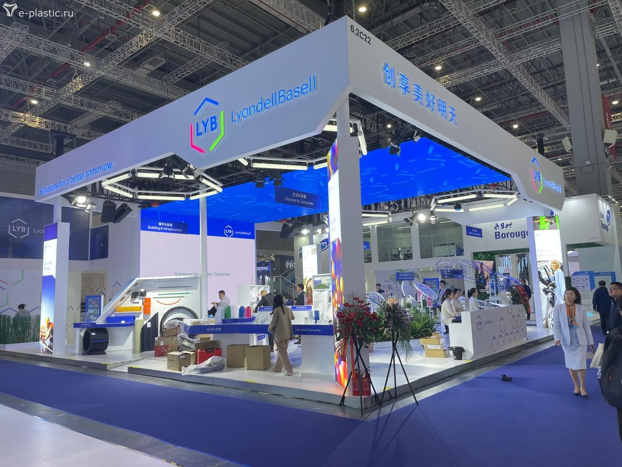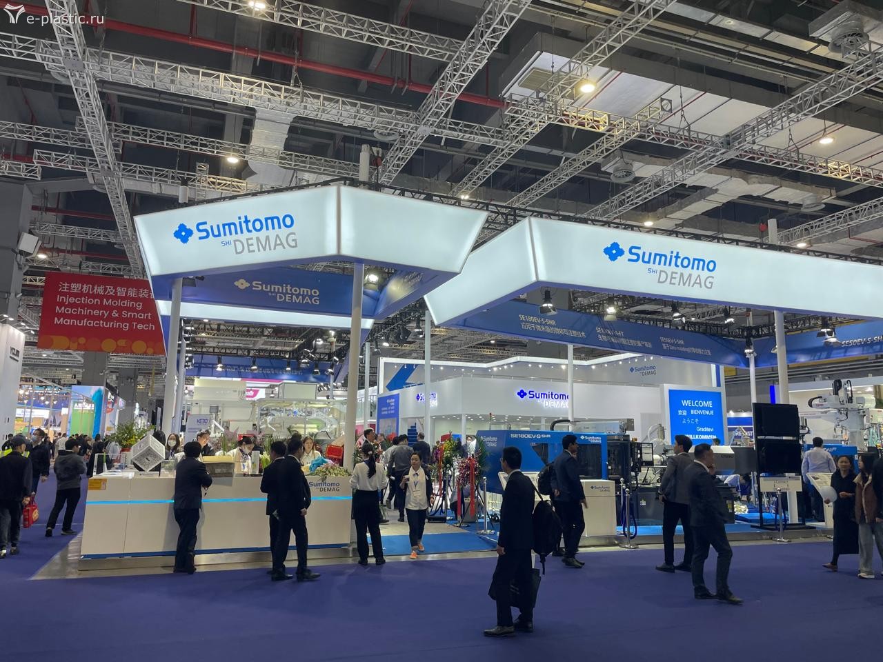 Удивила немного экспозиция компаний производителей и поставщиков полимерного сырья и сопутствующей химии. Во-первых, по сравнению с предыдущими аналогичными событиями, она оказалось удивительно мала. Во-вторых, не сбылись ожидания увидеть там стройный ряд российских нефтехимиков, уже всё импортозаместившими и атакующих азиатские рынки высококачественными полимерами и прочими каучуками. Объединивших большую их половину Сибур имел довольно скромный и бледный стенд (даже без иероглифов в шапке, что сильно нас расстроило), Лукойл, Роснефть и остальные вообще не явились. Европейские и американские бренды полимерного сырья также были неактивны, а доминировали китайцы, корейцы, арабы и японцы. Великих и ужасных нефтехимиков из Ирана видно почему-то не было.