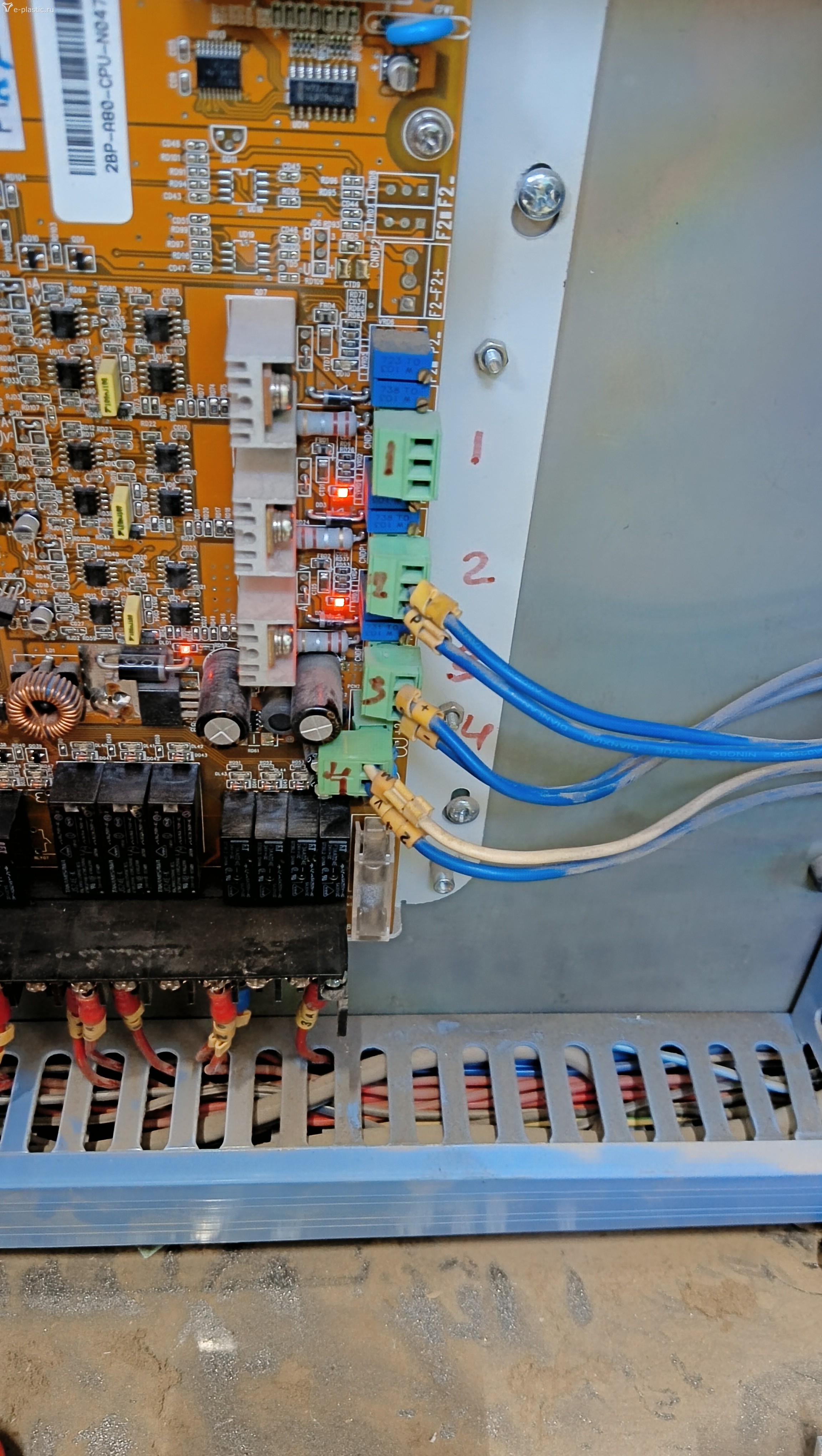 Здравствуйте, пользователи форума! Такая проблема... У нас сломалась четвертое реле на нагрев шнека. Сняли плату, перепаяли на новое реле. Нагрев заработал. Подключили все провода как было. Возникла такая проблемма. Сопло не едет назад - загорается лампа ошибки, но вперед оно ехало без проблем. Давление в систему подается звук есть но движения не происходит и одновременно с нажатием клавиши движения загорается ошибка. То же самое и с впрыском - звук есть, процесса нет, лампа аварийная горит при нажатии кнопки движения.. Очень надеемся что при пайке не повредили плату.