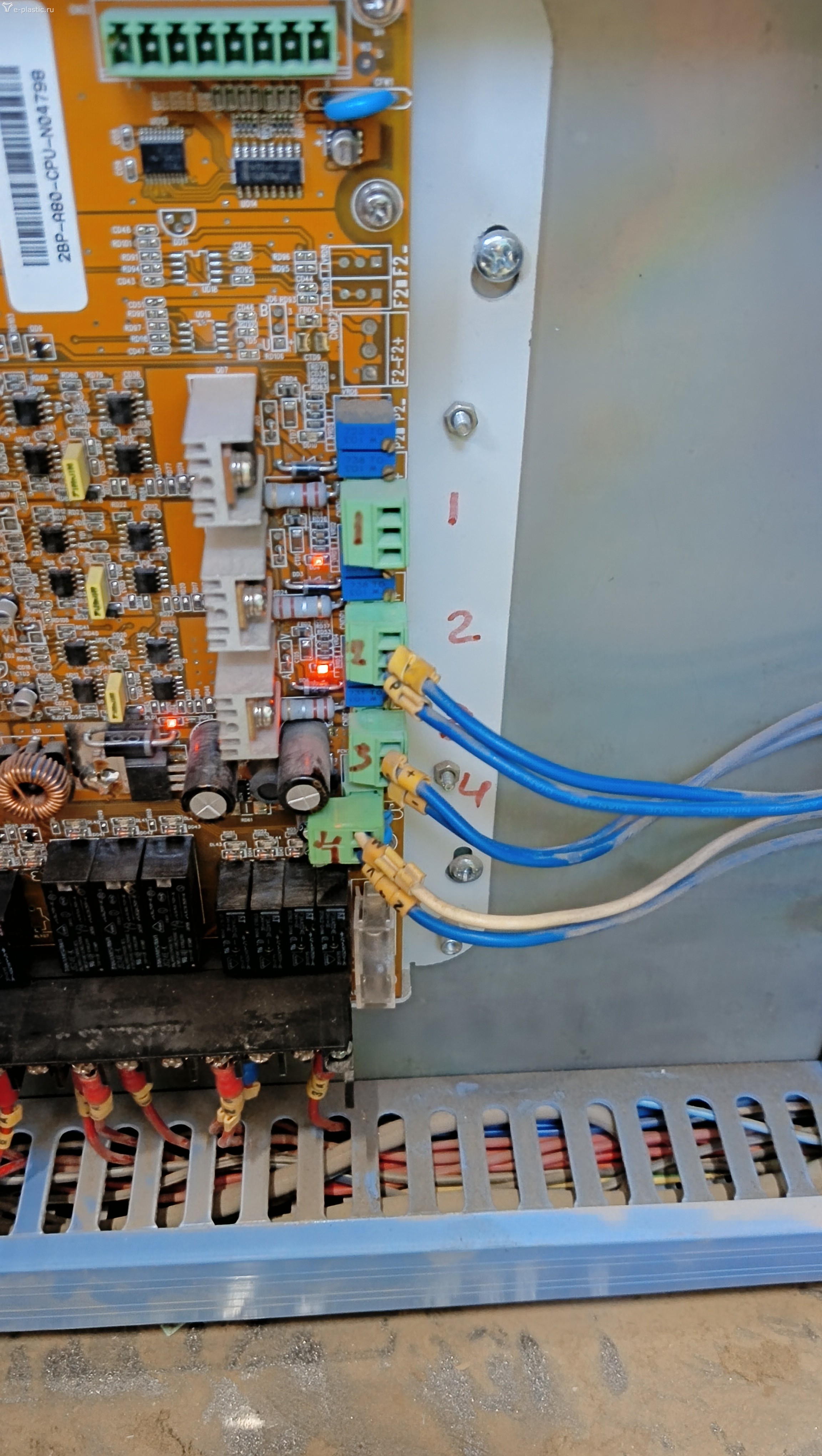 Здравствуйте, пользователи форума! Такая проблема... У нас сломалась четвертое реле на нагрев шнека. Сняли плату, перепаяли на новое реле. Нагрев заработал. Подключили все провода как было. Возникла такая проблемма. Сопло не едет назад - загорается лампа ошибки, но вперед оно ехало без проблем. Давление в систему подается звук есть но движения не происходит и одновременно с нажатием клавиши движения загорается ошибка. То же самое и с впрыском - звук есть, процесса нет, лампа аварийная горит при нажатии кнопки движения.. Очень надеемся что при пайке не повредили плату.