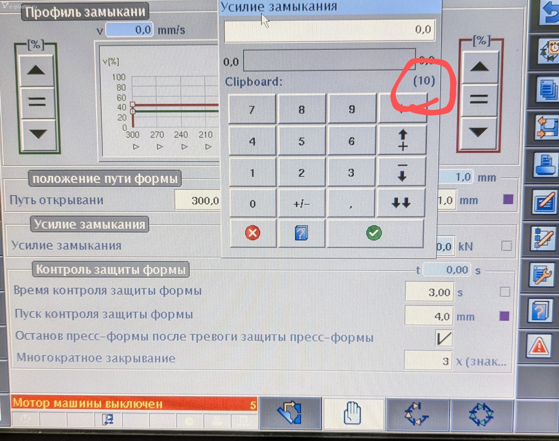 У нас возникла проблема с термопластавтоматом ENGEL VICTORY 200/50 FOCUS - перестала корректно работать уставка по усилию замыкания (при вводе значения на клавиатуре ввода раньше было от 0 до 500, стало от 0 до 0), из за чего возникает ошибка "Усилие замыкания вне рамок спецификации". Ввести значение в поле нельзя, так как "превышает уставку".