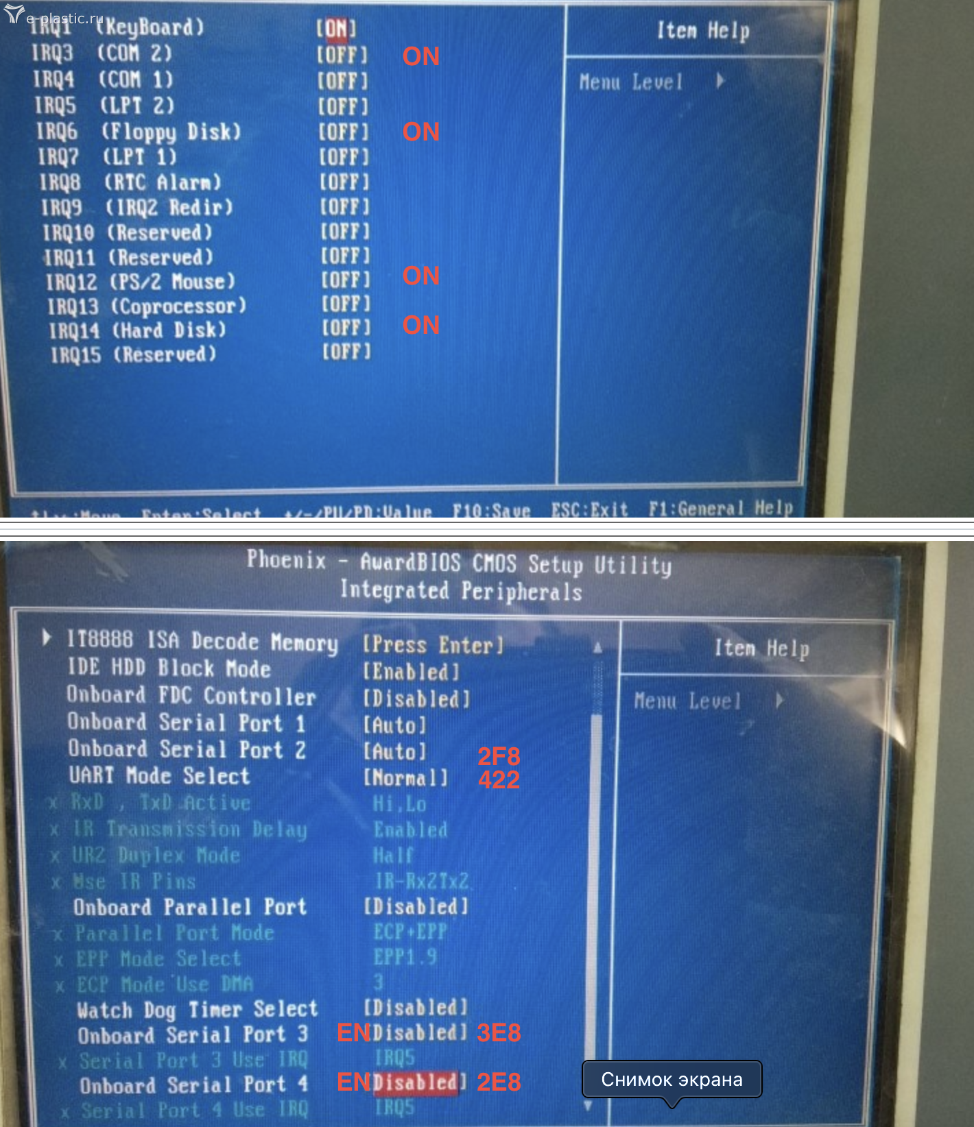 Нужны уставки раздела IT8888 ISA Decode IO (скорость ,адрес, размер) т. к. пульт оператора подключен через шину РС-104