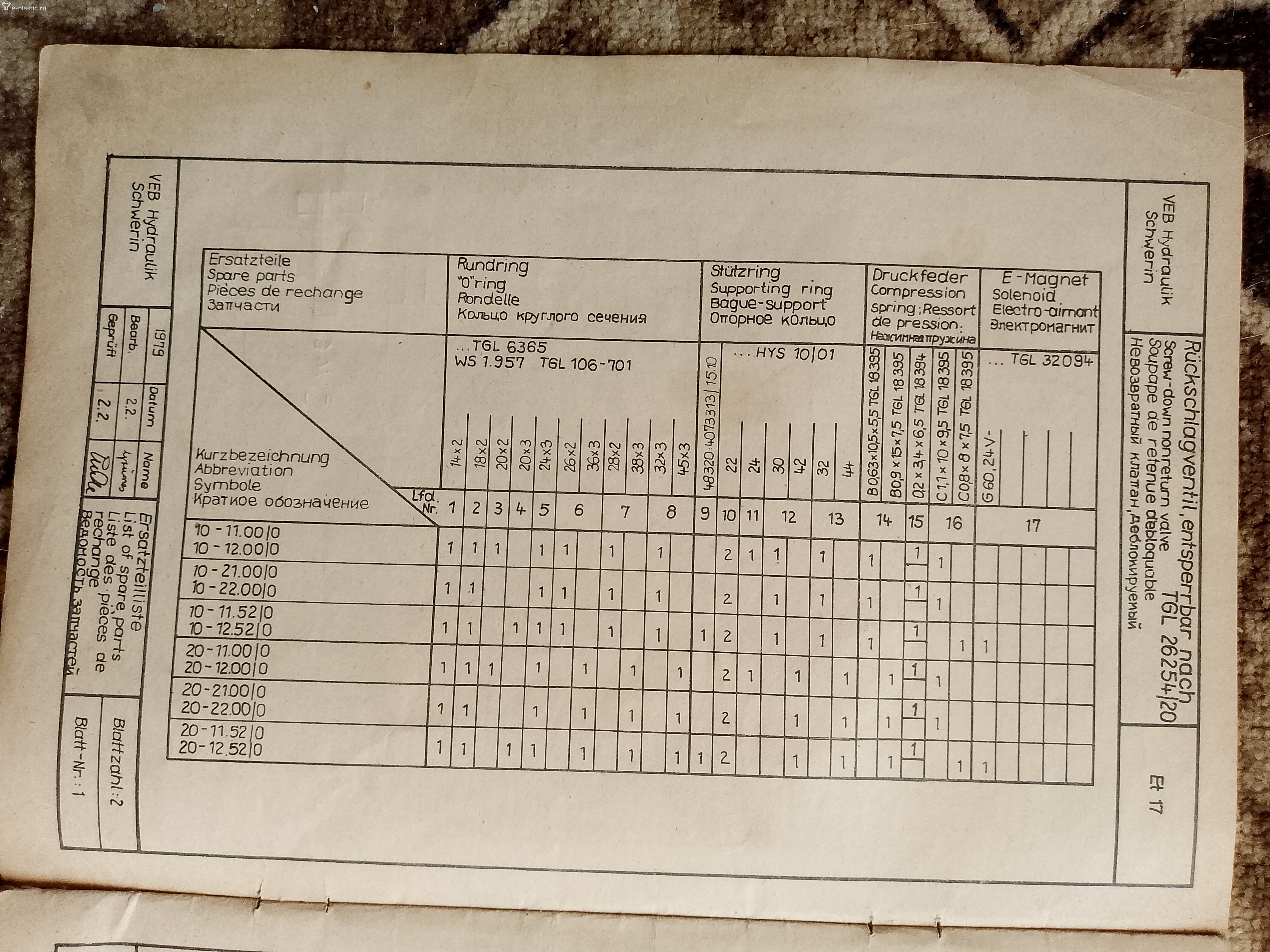 Ревизия опрос. Опись с работающей машины из Москвы. Впрыск: TGL 26245/20-6/83 ∆ ORSTA 05 -20-21.12/0. Обороты шнека: TGL26245/20-3/83∆ORSTA 05- SB20-21.02/0 . TGL- номер каталога, 20- условный проход, 3/83 - дата выпуска, ОRSTA- фирма ГДР, 05-20-21.12/0- назначение думаю начинка функция аппарата. Надо уточнять где то видел в инете раскодировку. Теперь надо Сергею переписать что у него. Для порядка. Вечером.