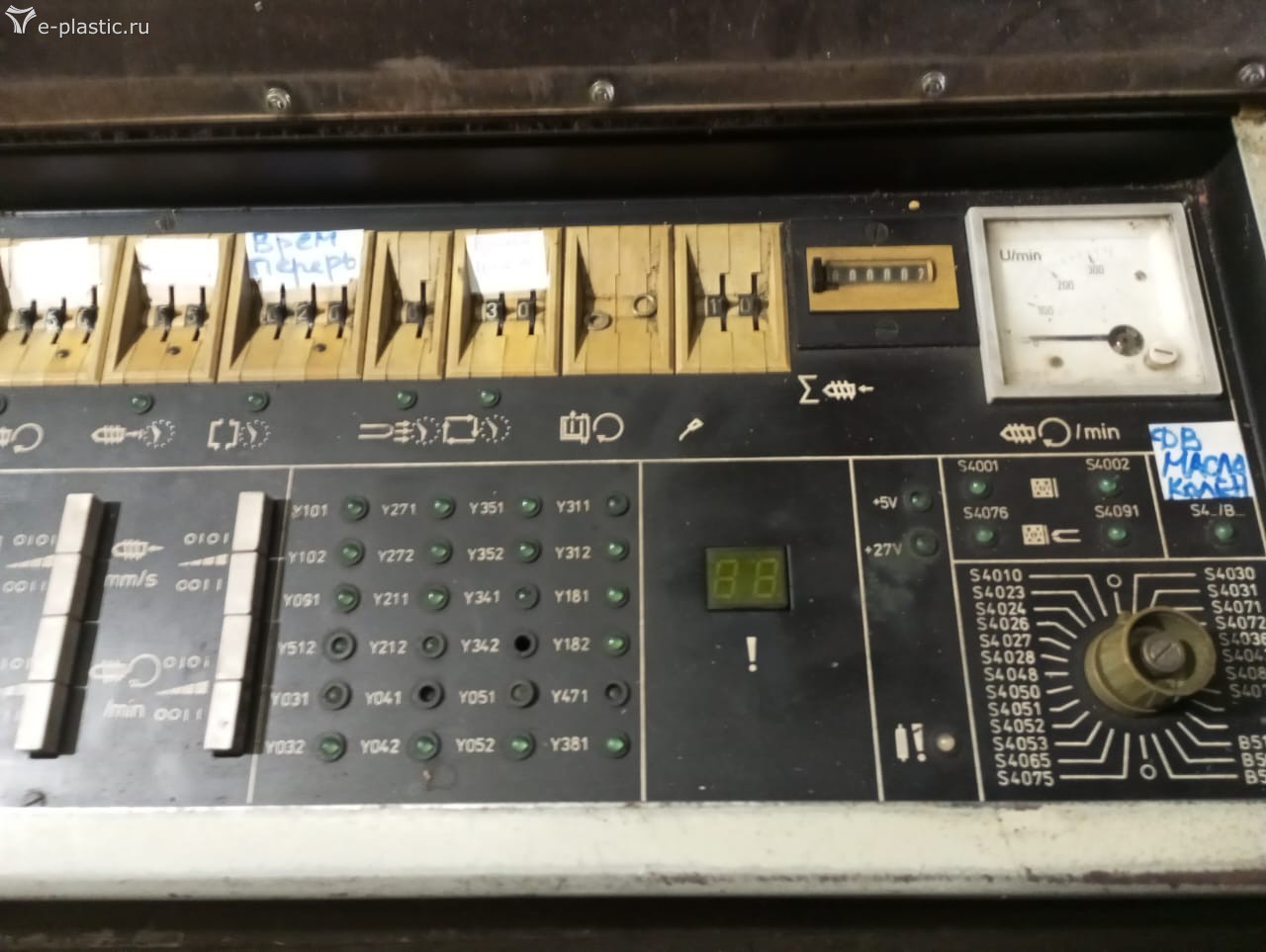 Здравствуйте, коллеги. Проблема с которой я столкнулся при работе с этой машиной. В ручном режиме все операции цикла отрабатываются нормально. А вот в Полуавт и в Авт происходит так: смыкание, впрыск, набора нет, размыкание, толкатель вперёд и всё, СТОП. Я думаю, что неверно выставлены таймеры. Документации нет. Где можно скачать? Владельцы этого аппарата, может что то подскажите?