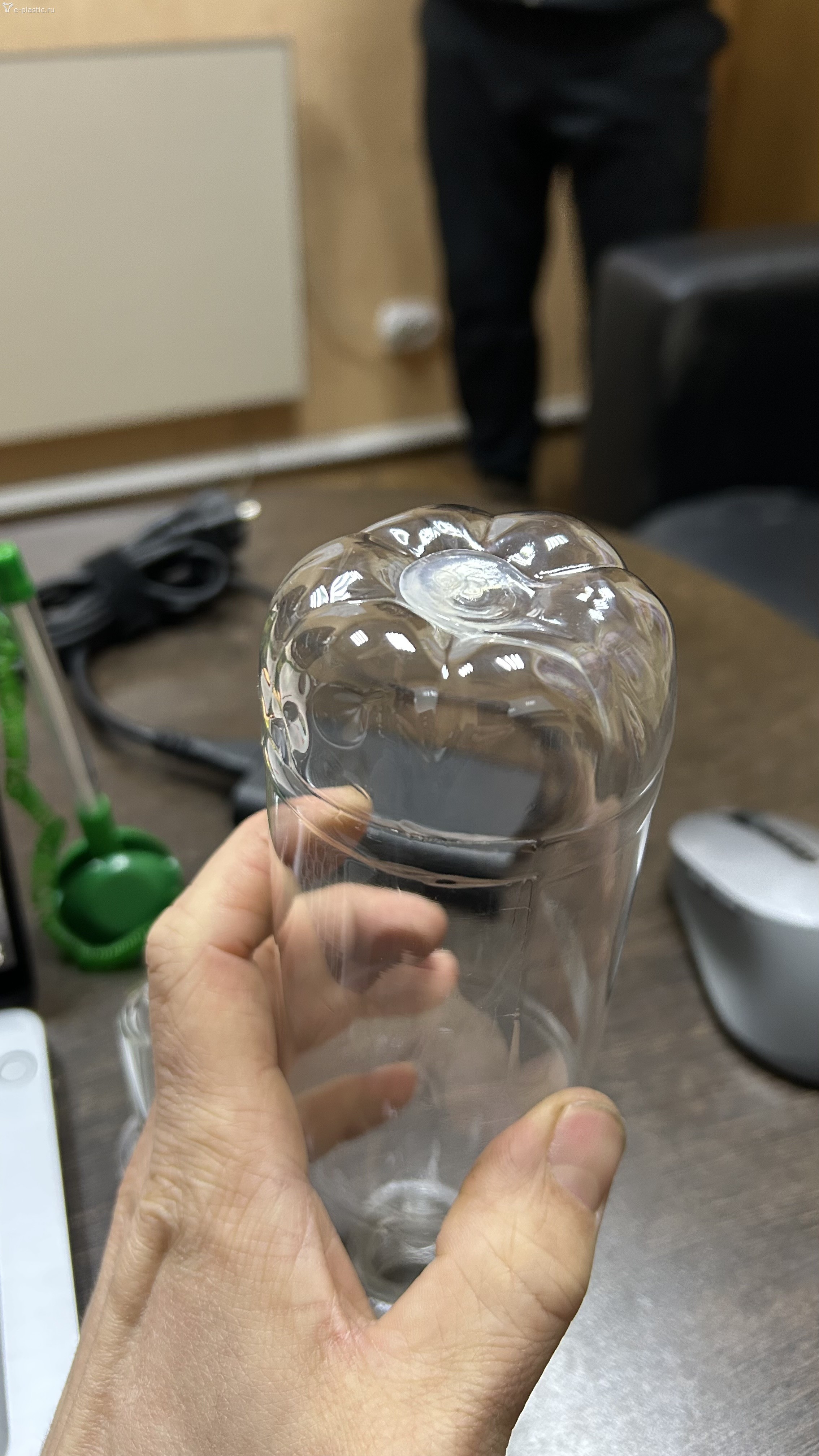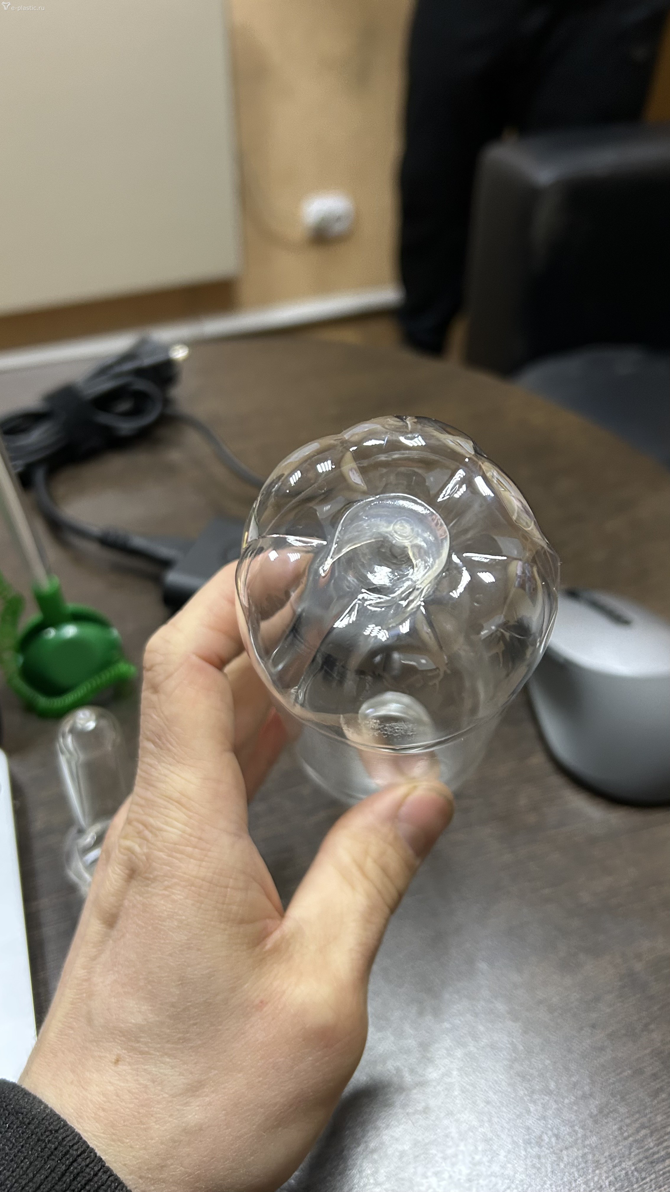 Приветствую Вас! У меня на обоих станках зазор от чашечки до штока 3 мм. Бутылка идёт идеально. А вот по поводу литника, как я понял у вас уходит в сторону точка на дне бутылки, то я эту проблему решаю с помощью сброса температуры на самом верхнем тене. Изначально тоже методом тыка пробовал.. У меня в цеху по началу работы температура -5, а то и меньше. Поэтому температуру изначально ставлю высокую по всем тенам. На дно бывает 110 ставлю. По ходу работы скидываю до 75-80 градусов.