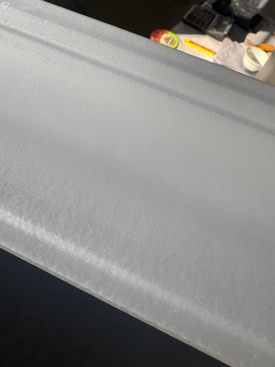 Добрый день, столкнулся с такой проблемой на китайской линии, работаем с полистиролом 1161 ПТР 4-5, тальк китайский марку не помню, проблема с поверхностью плинтуса , на ощуп идёт гладкая но при просмотре под углом непонятные полосы