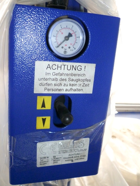 Продается система вакуумной выгрузки сырья Oktomat фирмы Helios. Система предназначена для вакуумной выгрузки сыпучего сырья (гранул) из гитербоксов, биг-бегов и прочих контейнеров и применяется для стабильной подачи сыпучих полимерных материалов в литьевые, выдувные и экструзионные машины. Данное оборудование позволяет выгружать сыпучие материалы непосредственно сверху контейнера, не поднимая контейнеры не пересыпая сырье в промежуточные емкости, не допускает забивание пневмосистемы стенками полиэтиленовых мешков и позволяет практически полностью опустошить хранилище. Система управления позволяет задавать временной интервал и объем выгружаемого сырья. Конусообразная головка легко погружается в сыпучий материал и защищает систему от попадания посторонних предметов. В наличие 2 штуки. Производство – 2003 год. Практически не эксплуатировались (использовались 1 месяц). Хранились в сухом отапливаемом помещении, следы коррозии отсутствуют.