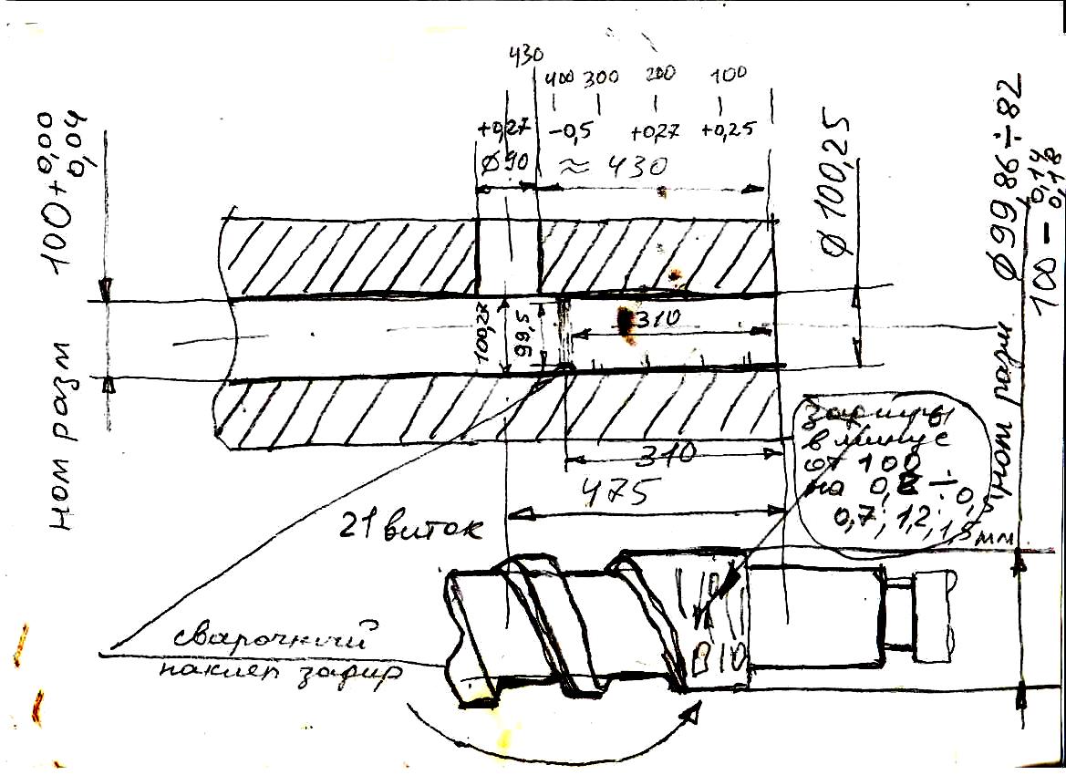 Для статистики: ТПА Куаси 5000/800. Диаметр шнека 100 мм. Машина 1987 года выпуска. Диагностика и замеры износа шнековой пары.