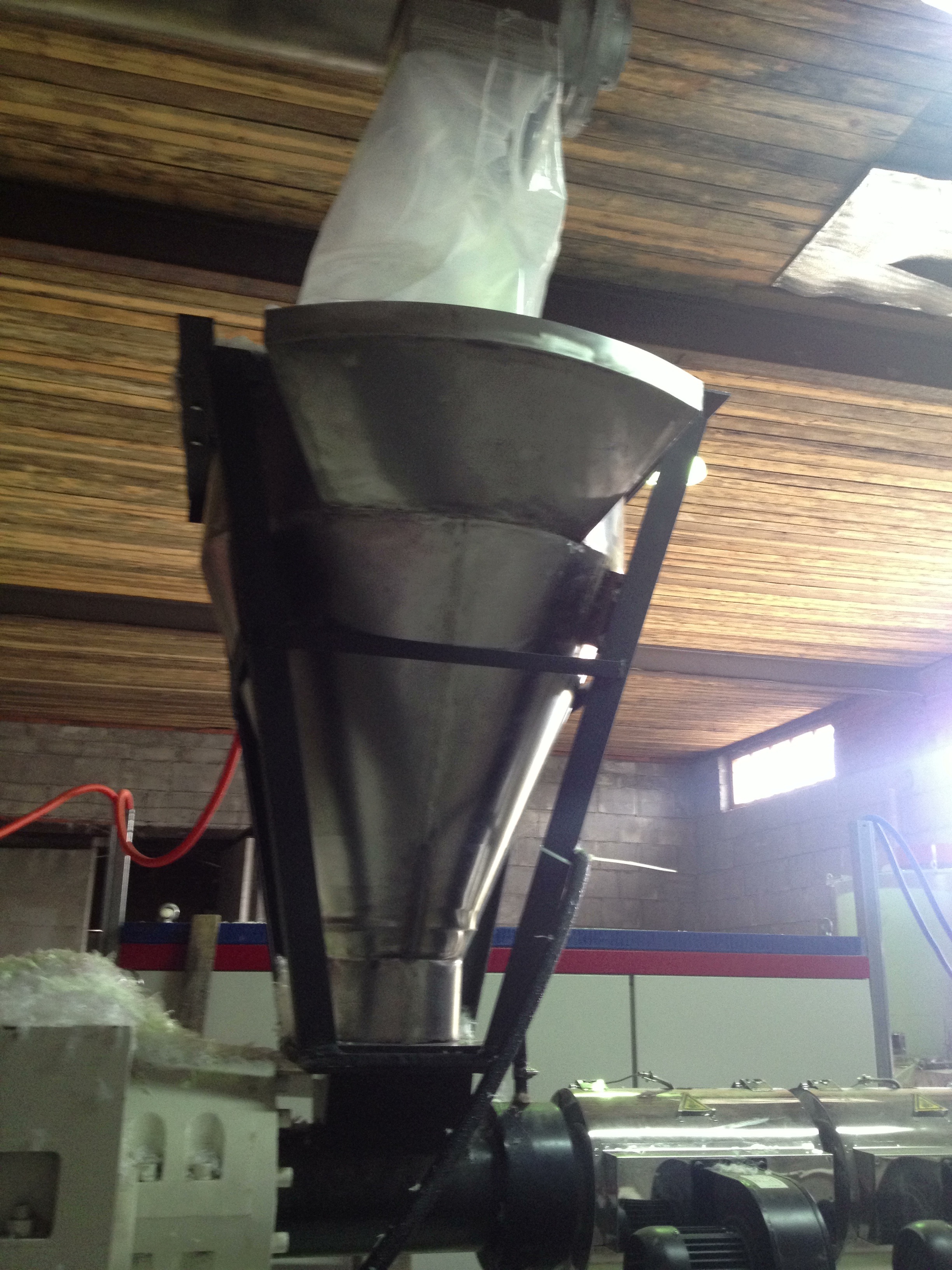 Добрый день подскажите пожалуйста у нас проблема с производительностью в следствии нестабильной подачи расплава в нижний каскад . Мы считаем что это происходит из за неправильной запитки экструдера дробленкой (пленка стрейч,пвд).Грешим мы больше всего на шнек питателя а так же думаем что приемный лоток экструдера может быть не правильно выполнен(обратите внимание на фото приемного лотка экструдера там имеется что то вроде барьера ,отмечено стрелкой) . Если у кого то возникали подобные сложности буду очень признателен за совет.