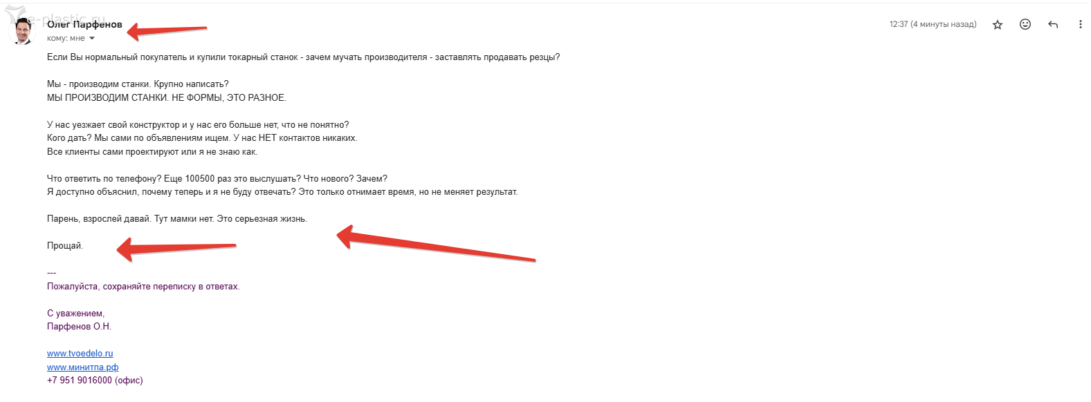 Компания мо...енники, просто взяли деньги, продали станок и спрятались, бросают трубку, не хотят помогать, не решают вопросы , за ранее ввели в заблуждение , никогда не покупайте у них станки, подумайте несколько раз прежде чем связываться с ними.Олег Парфенов писал(а): 24 фев 2015, 20:22Да, это наш станок. Иногда так бывает, станки/оборудование покупают, а планы меняются.atmorkov писал(а):Не знаю как белорусы, но вот в Кемерово на авто продается с 10 февраля новый миниТПА 50 от твое дело https://www.avito.ru/kemerovo/oborudova ... _508761892