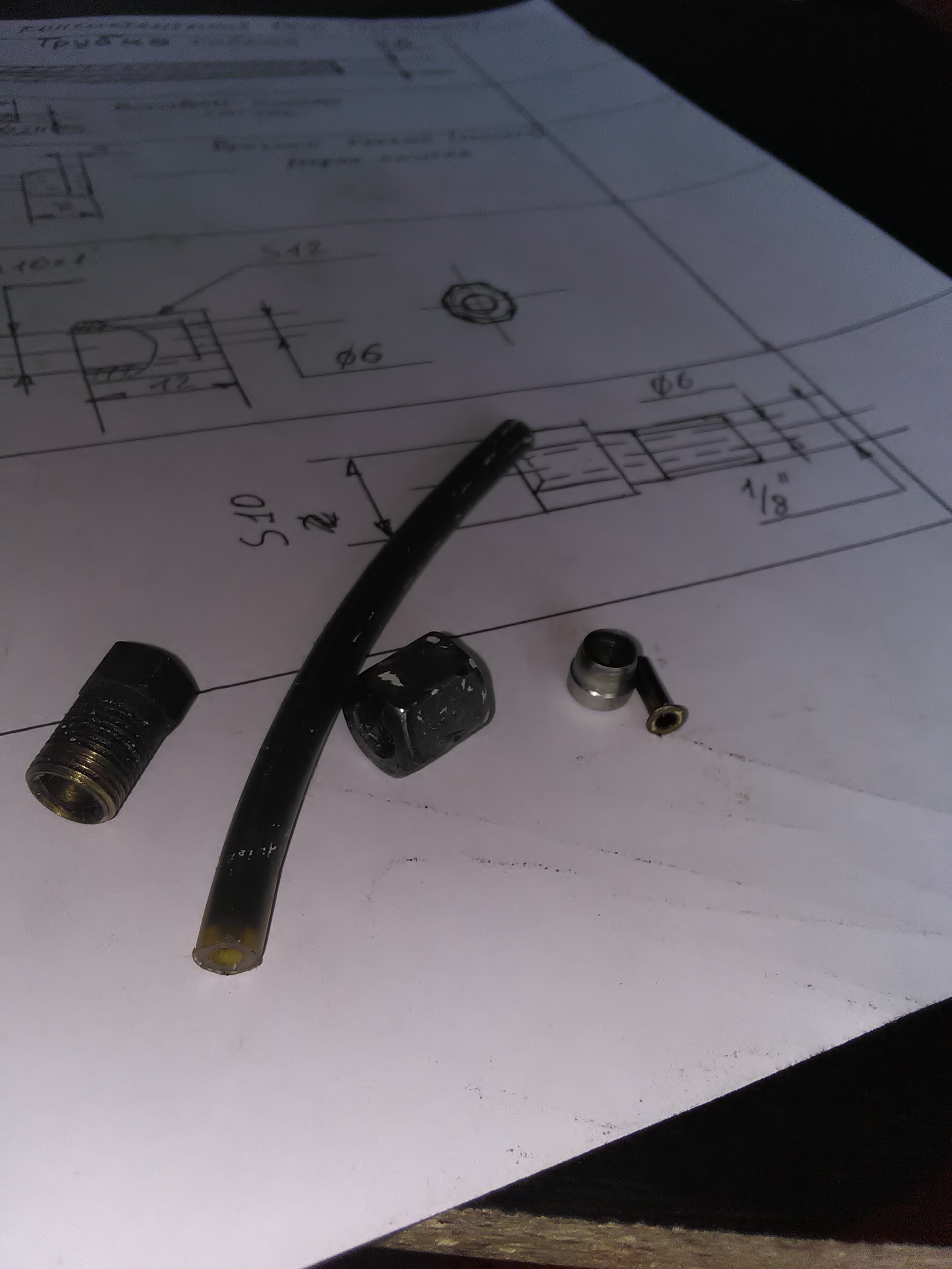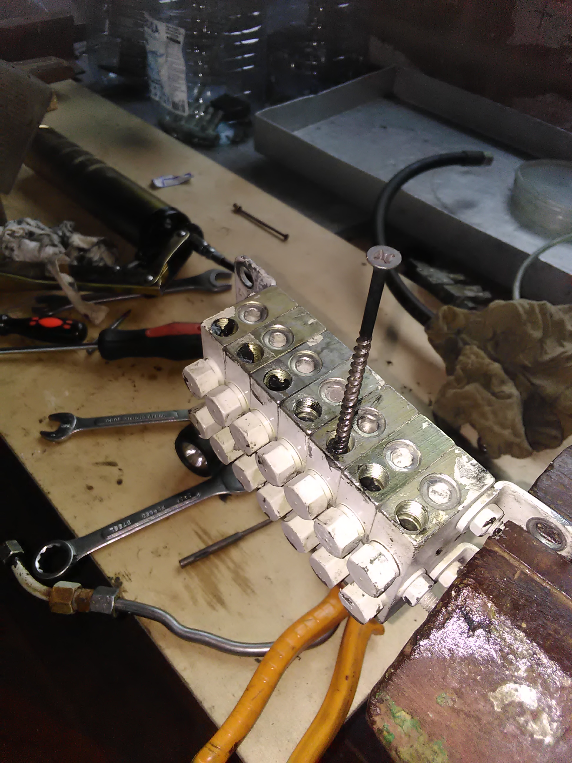 Готовим блоки питателей. Обрывы, обжимные кольца сидят крепко. Саморез. Система последовательная. При закупорке одной точки не работает весь блок. На Демаге нашем два блока. Система двух линейная. Проверяем обычным шприцем. Давление приличное. Если блок исправен, работает весело без особого напряга. Один блок продавить не могли лопнул шланг нашего шприца. Купили новый. Причина: закупорка канала на входе в блок на первом питателе затвердевшая старая смазка. После чистки весело заработал и легко. На фото видно как смазка по очереди выходит из отверстий для трубок к точкам смазки. Счёт на оплате. Скоро Демаг обрадуется. Сделал проверку, заглушил один выход наугад, Смазка остановилась, угрожая порвать шланг высокого давления от нашего ручного нагнетателя. Так что все не так трудно и сложно.