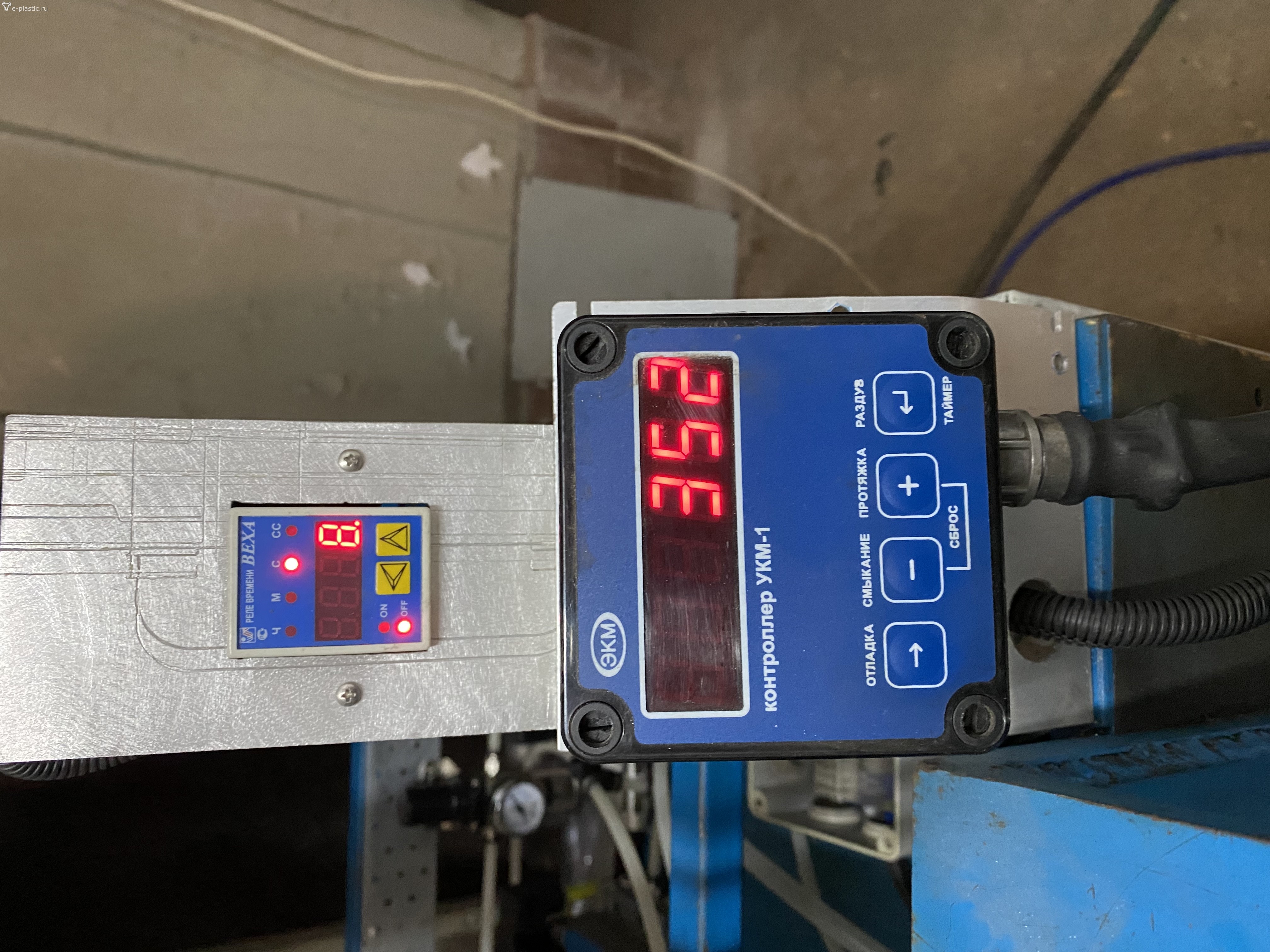 здраствуйте, дорогие друзья, очень нужен ваш совет, брака уже целая гора. у нас 2 станка, выдув 1л и 4л, с 4 литрами проблем нет, все настроили, а 1л был на тех обслуживании и настроить не можем никак, давление основного выдува 14-16 атм, предвыдув 7 атм, задержка 0.3, предвыдув 1.0, выдув 2.4; фото станка, печи, их настроек и фото получающихся бутылок приложу, основная проблема это гнет горлышко и не додувает донышко по пресс-форме. контроллер печи имта, а аппарата укм-1, смыкание плит и размыкание перенесено на контроллер веха вверх.