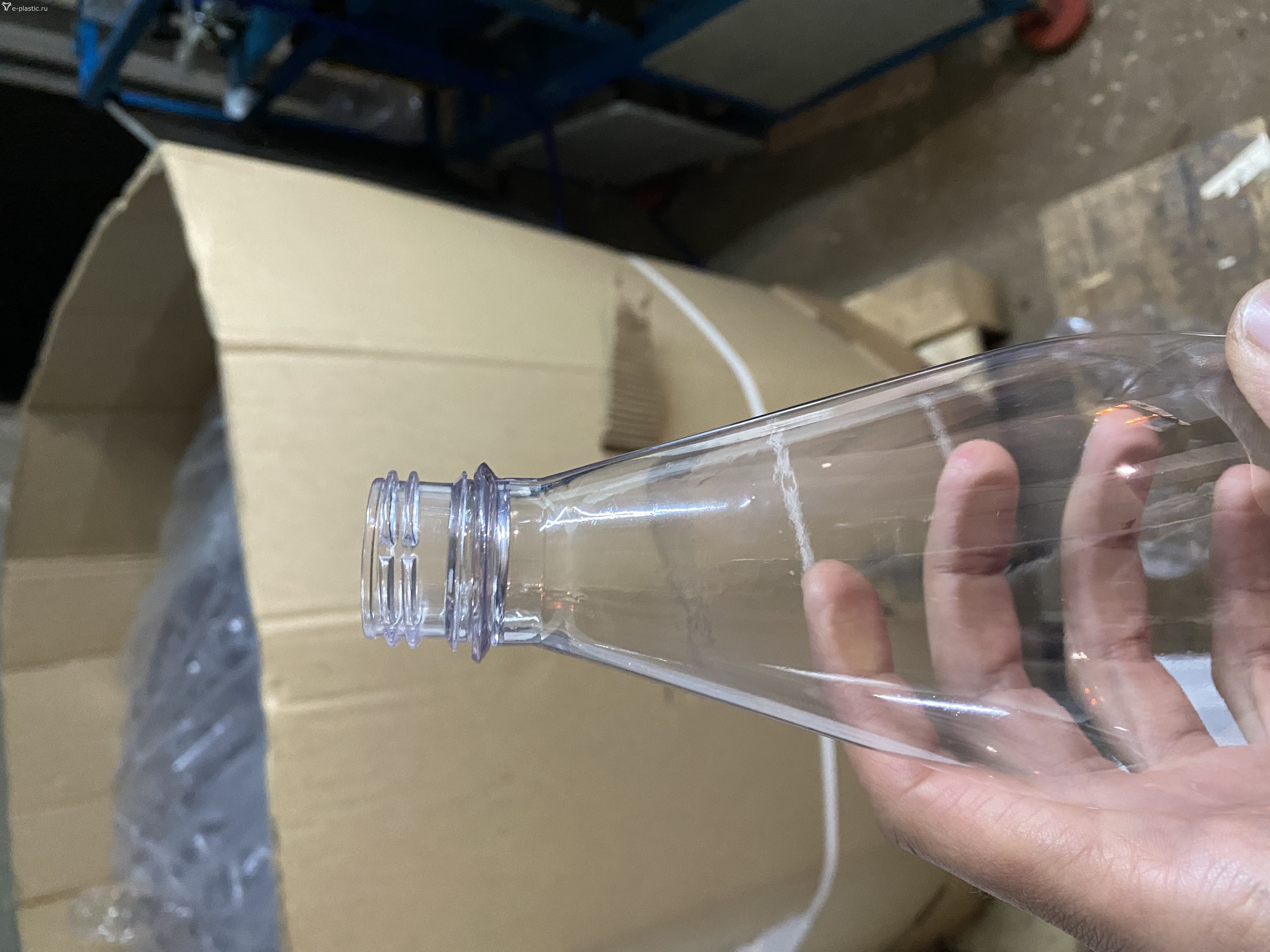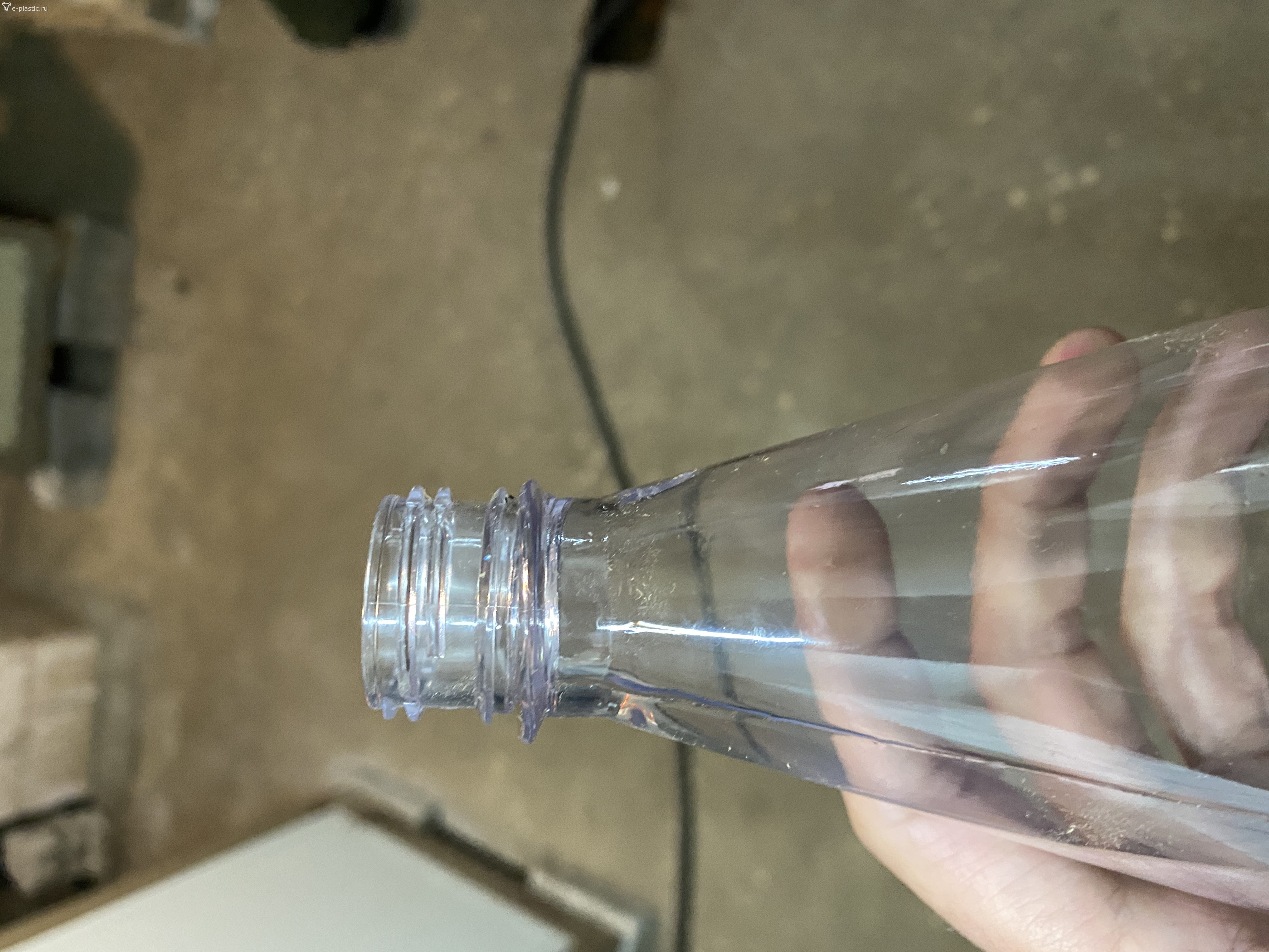 фото к вышевыложенному посту получившихся бутылок, преформа разогрета как положено, прожимается от начала до конца, выше нельзя, начинает белеть, с охлаждением порядок, аппарат выдува отрабатывает исправно, согласно заданной программе.