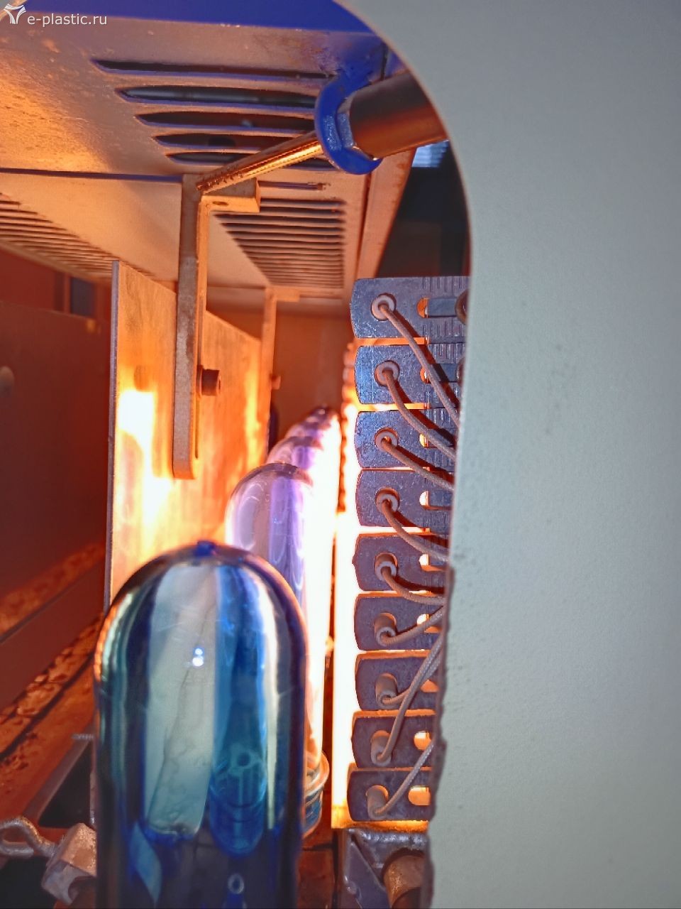 Здравствуйте! Спасибо огромное что ответили и отозвались на мою проблему.Станок приобрел недавно,не работал на нём.Пробую только запустить.Управление производится герконами:выставил на предвыдув по низу преформы вставленной в прессформу и опустив штоки в преформу.Самый нижний геркон на выдув стоит в самом низу.По печи:Стоят лампы кгт220-2200 три штуки(1,2,3), на четвертую верхнюю зону поставил кгт220-800.Преформы выходят прозрачные не побелевшие.Скорость регулируется "барашком" в ручную. Экраны показателей температуры метрические от 0-100.Выставил параметры считая от горла к дну: 1 зона 45, 2 зона 45, 3 зона 60, 4 зона 20.Информацию по станку не где не могу найти.И наладчиков соответственно тоже.