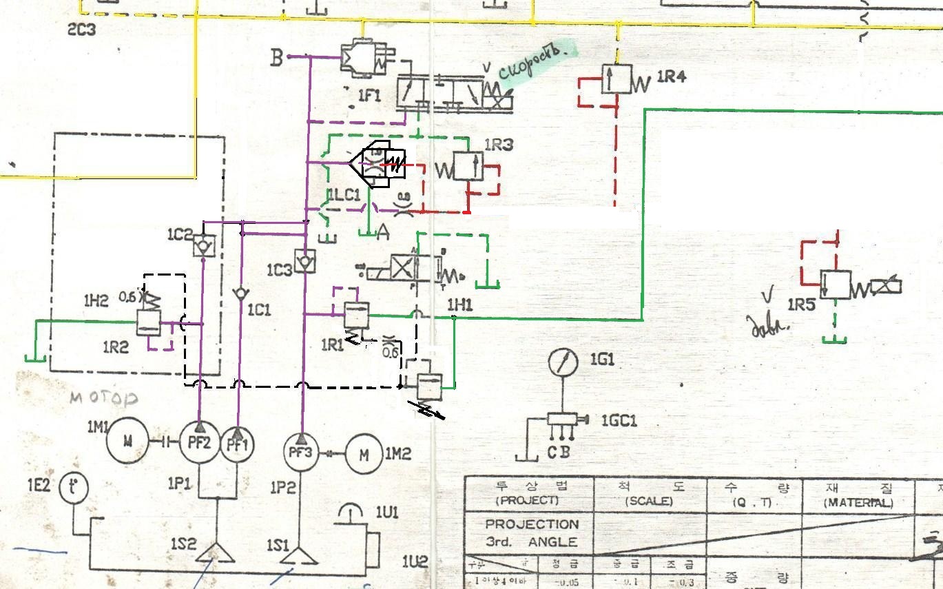 Здравствуйте (всем) Ребят может в этом 1Р4 какой нибудь канал забиться или зохряснуть или зависнуть а после как я его крутил туда сюда отойти ? просто странно как-то когда я только его крутить начинал (в начале темы) у меня получалось 1Р4 вывернут рывки смыкания но на манометре давление соответствует давлению сколько поставил на табло 1Р4 завернут до конца рывков нет но ставим давление 140 а на манометре 100 жмем 1Н4 на манометре 140 Сейчас он 1Р4 что вывернут что завернут давление в настройках соответствует давлению на манометре 50=50 140=140 но я еще и 1Ф1 полностью разбирал мыл в керосине Еще интересный момент когда 1Р4 вывернут смыкание идет рывками а если я в этот момент принудительно нажимаю на 1ф1 рывков нет смыкается четко но быстро На счет вчерашнего что писал но закручивал я винт 1Р4 не до конца а пробовал в процессе пока рывки не прекратятся (пробовал метод включаю насос на манометре (В) всегда показывает 10-13 бар переключаю манометр на (С) чуть больше нуля может 3-5 бар ( единицы измерения на манометре по 10 бар) подвел впрыск в упор манометр (В) выкрутил 1Р4 как было 10-13 так и есть манометр на (С) жму принудительно на 5Н2 и закручиваю винт 1Р4 как было 3-5 так и осталось) И еще помните я говорил что если 1Р4 закручен смыкание нормально идет а размыкался с грохотом короче получилось как вчера писал на размыкание тоже этими кнопками скорость убрал (стояла на 100 и давление 80) да еще станок пресс форма снята а механизм я весь распрямлять при смыкании без формы боялся вот размыкание из середины с грохотом и получалось
