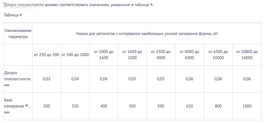 ТПА по классу точности выпускают разные. И цыфры будут разными. Я опираюсь на паспорт Одесского завода ТПА. Машины и на их акты проверок новых машин 90х годов. Одесса 250 и 500. Они в два раза крупнее 170-ки. Параллельность.0,08 соток. И не стоит брать за основу первый попавшийся ГОСТ. Выбор машины зависит, под какие задачи вы ее приобретаете. Под ширпотреб. Или под разовую посуду тонкостенку , вилки, ложки, медицинские изделия , оборонка. Есть нормы и качество азиатского региона, есть нормы европейского региона. Соответственно цена ТПА разная и существенно. Ну конечно! Зачем менять шаровые и делать сход развал, если машина его все равно потеряет? И кроме натяга колонн есть и другие регулировки. Считаю бессмысленно далее обсуждать. На форуме это избитая тема. Важно: ТПА выбирается под конкретную линейку литья.!!!!!! И по видемому вы не видели работу ТПА со скоростью 5 секунд цикл. И 100 местные формы 15 секунд цикл. Оторвите взгляд от своей телеги и оглянитесь вокруг. Ютюб в помощь. А если меня спустить на землю. Я с вами соглашусь. Не до жиру. Телега должна ехать. И хороша та телега, которая едет.