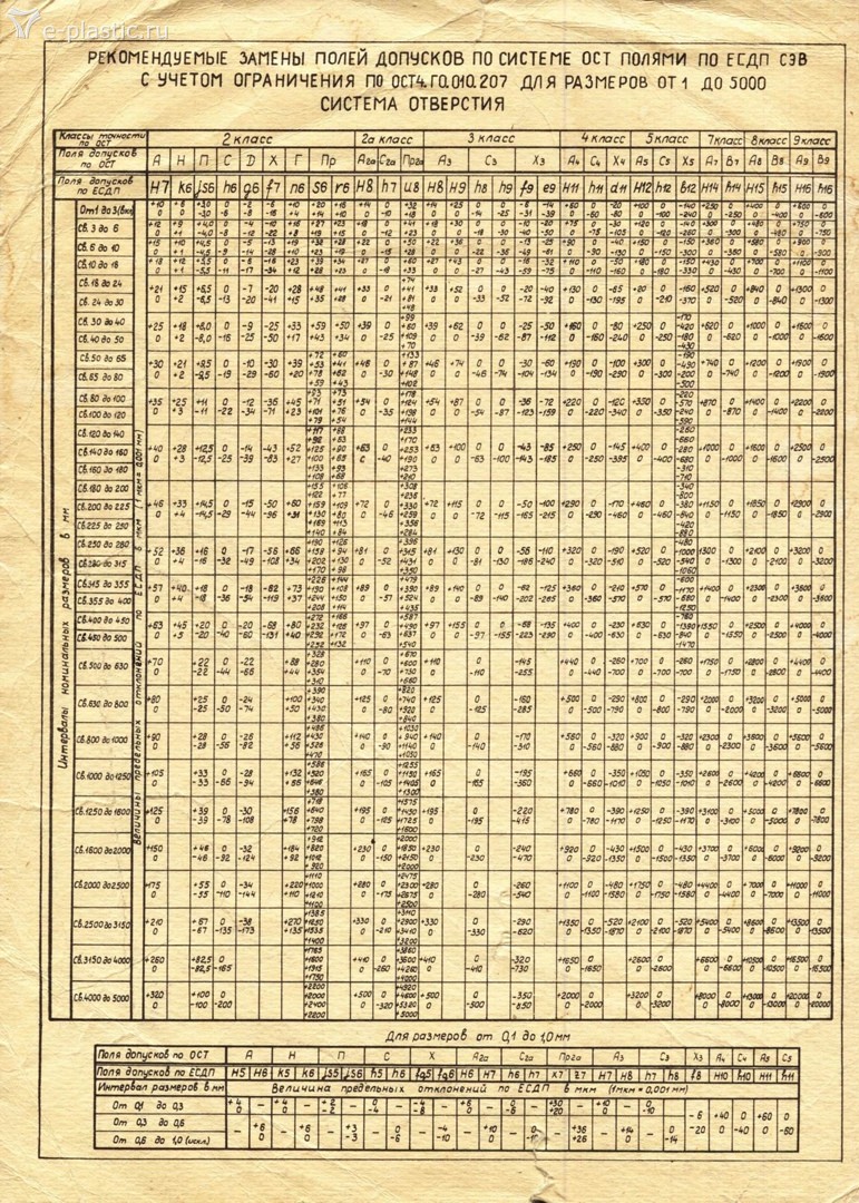 Я поступал с куаси так: Вот моя любимая совковская таблица. Исходя из практики и многочисленных ремонтов и наблюдений. Привел все к единому стандарту. Что бы не было путаницы с размерами. Заказывали очень по многу. Поэтому разбитые планки и рычаги растачивались в 0+0.025. Всегда и безоговорочно. Втулки в них также стандарт с учетом посадки и усадки. Пальцы стандарт. Отверстие внутри втулки после запрессовки Второй класс точности. А (Н7) 0+0,025. Вал -палец по второму классу точности посадка Х- ходовая. Х (f7) Например: Ф45 -0,025-0,050. Сравнивал с немецкими оригиналами на том и стою. На Китайцах пальцы все в минусе 0,15мм. Срок сносной работы 6-7 лет. Без ремонта КРМ. Ремонты через шесть месяцев. Требования на бумаге. Потом дали разрешение принимать меры по факту и согласованиям. И что ты ,вы зациклились на зазорах. Если они синхронные одинаковые при запирании они все идут в натяг. И параллельность не нарушиться. Зазоры по деталям согласно допусков и посадок. Колонны, втулки то же. Все будьте любезны не косячить. И все сойдется как надо. Читай лучше про виды брака и облой. Вот Немцы Куаси почему до сих пор работают??? И без ремонта КРМ. Ремонтируют по факту поломки и дальше поехали. Я за правильный подход, который обзывают перестраховкой, сгущением красок, максимализмом.... Эх молодежь?! Был у меня практикант ПТУшник, так ему приходилось все аксиомы доказывать. Ни чему не верил. Это и хорошо с одной стороны. Но блин доставал конкретно. вы на него похожи. Вы просили примеры. Наше руководство в годы перестройки покупало убитые машины на прочь. У нас через месяц они работали. При ремонте голые станины оставались. Снимали делали все. Коллеги скажут, заколебал своими повторами и бахвальством. А как тут не скажешь. ВЫНУЖДАЕШЬ разжевывать. И не представляешь с чем вы связались.