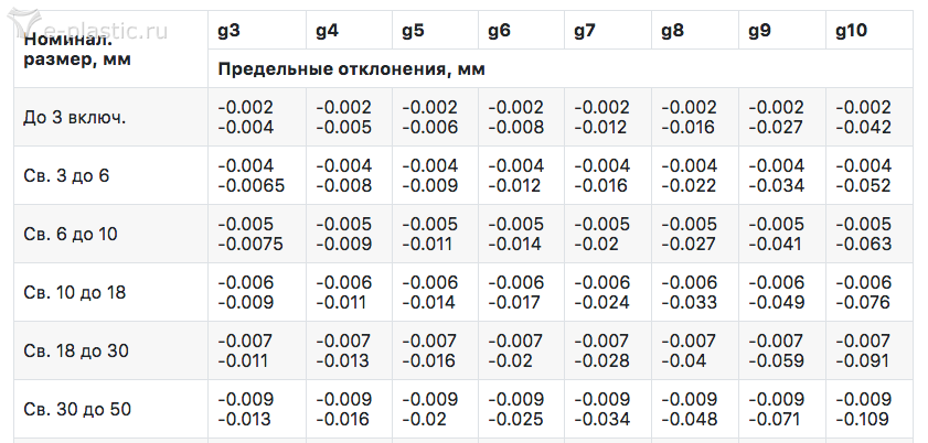 Теперь палец вторая таблица. посадка g6