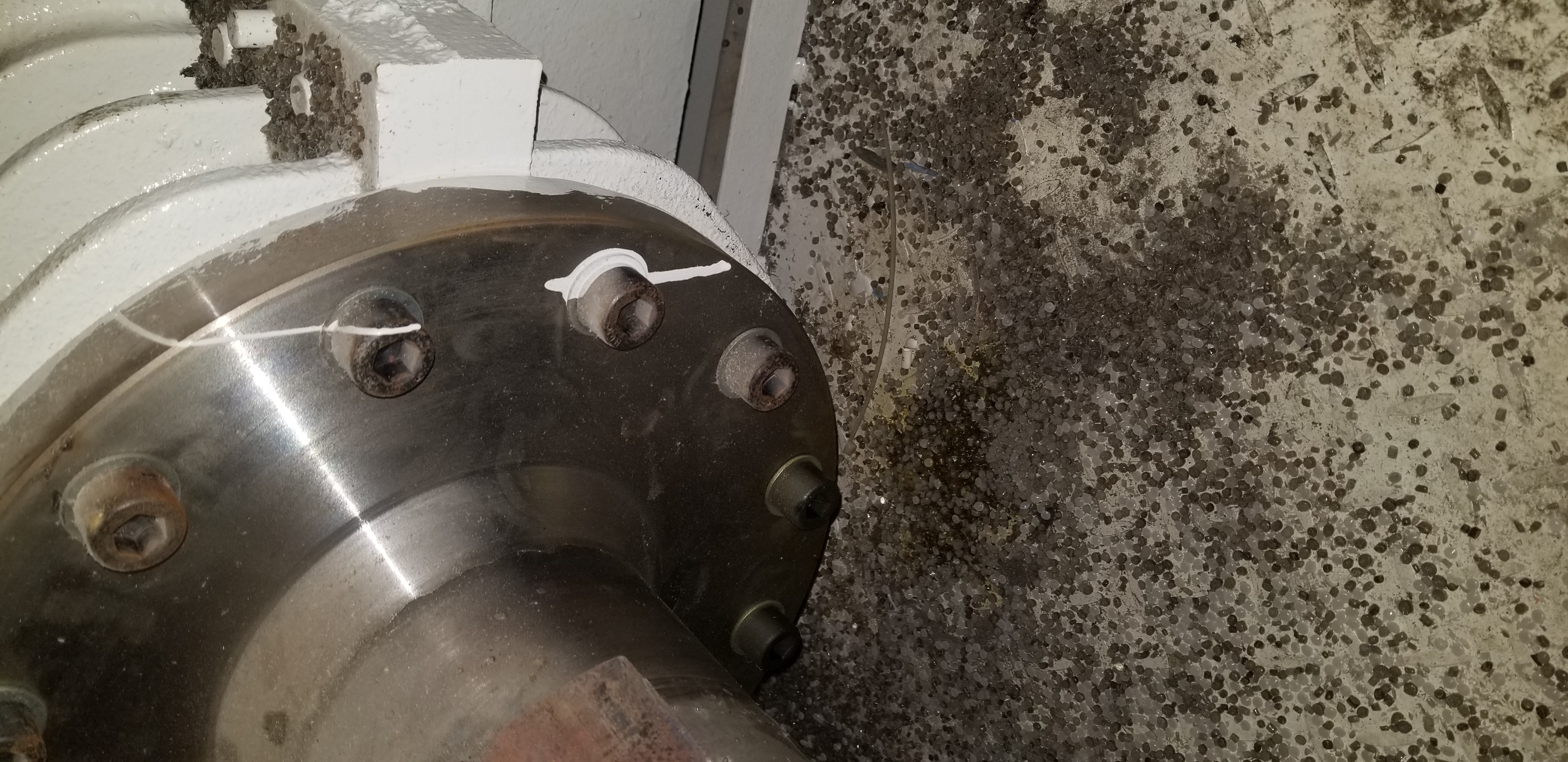 Похоже, что проблема в попадании масла в шнек. В месте вхождения шнека в редуктор явные следы течи масла.