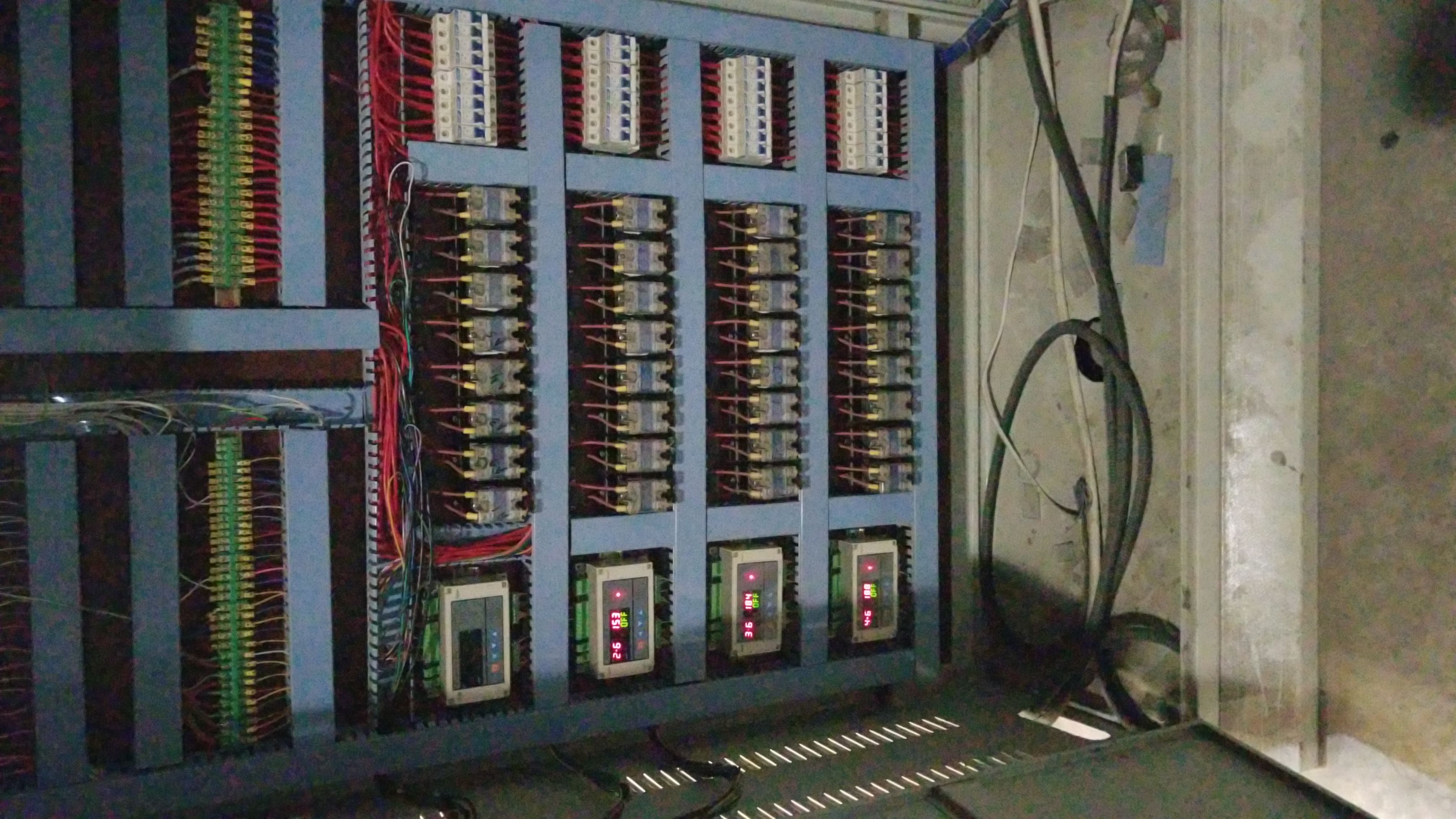 Слив излишки масла, и открутив крайние панели на фильере , принялся прогонять расплав...Спустя пару часов обратил внимание , что диструктированных частиц стало вроде как поменьше. Поставил боковые панели на место и решил запуститься, дабы проверить будет ли снова рваться полотно из за диструкции... Запустившись, увидел что на двух шнеках (На этот раз на А и В) начались превышения температуры по зонам- от 5 до 25 градусов. Полез на центральный шнек, чтобы проверить реальную температуру перометром: открыв крышки увидел, что контак (фаза) одного из тенов мигал - маленькие искорки были. Отплючил питание и подтянул все. Потом пошел на шнек А - там мигания отсутствовали. Решил достать одну термопару и проверить температуру перометром- перегрев был на 40 градусов относительно заданной. Вернувшись к пульту обнаружил, что один из терморегуляторов вышел из строя.... Попросту погас и все....он как раз отвечал за зоны шнека А и часть зон шнека В....