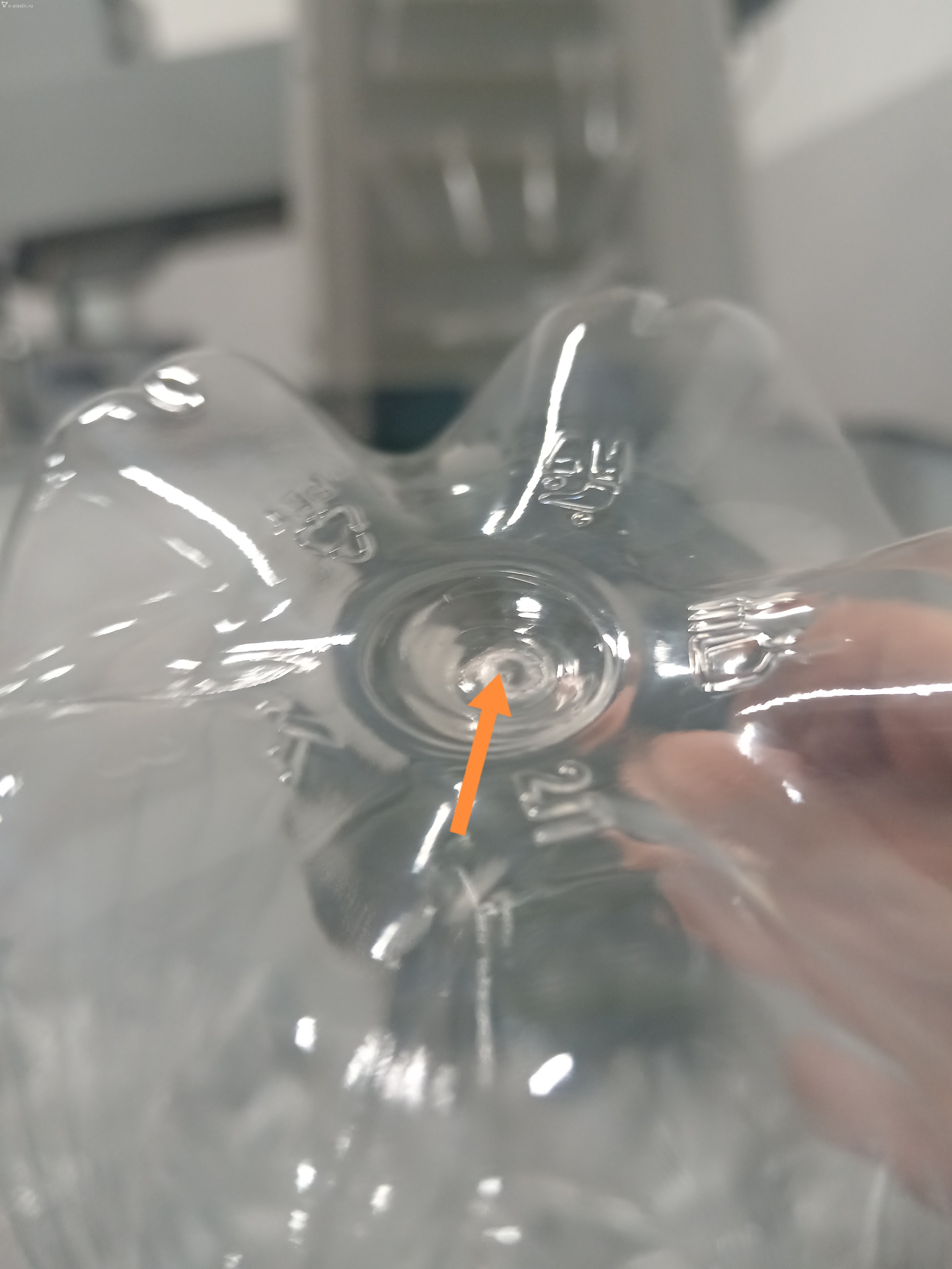 Добрый вечер! У меня была такая проблема. Как оказалось из-за слабого разогрева донной части преформы. Самую верхнюю тену добавил градусов на 5 и дефект пропал. Но при продолжительном выдуве, более 2-3 часов я сбавляю всегда температуру, т.к. помещение без вытяжки сильно нагревается и приходится по всем зонам убавлять температура минимум на 5 градусов, а то и более