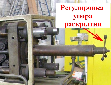Подразмыкаете немного и проворачиваете ручку ещё вперёд, на уменьшение размера так, чтобы большой зубчатый венец провернулся зубов на 15, после смыкаете до конца и контрите 4 гайки на колоннах.