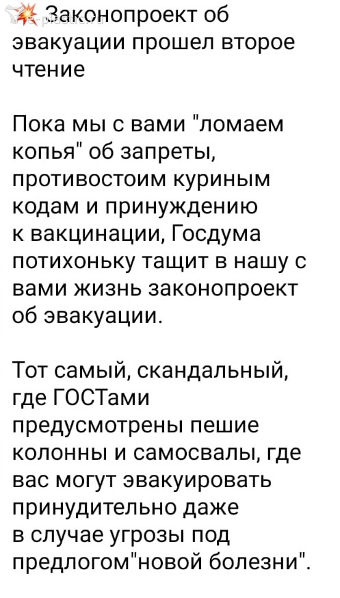 Да никак, они прорабатывают закон о куарах на транспорте...,, я говорил же о талантах, но тут бац...и наука российская в лице гамалейского директора поддержала опер штаб с профильными комитетами... «Эта мера эффективна, доказательства этому мы видели летом на примере Москвы, когда после введения QR-кодов началась массовая вакцинация. Если коды будут введены на законодательном уровне это будет великолепно», — рассказал Гинцбург. Едрёнбатон, а как же плакаты!!?? .