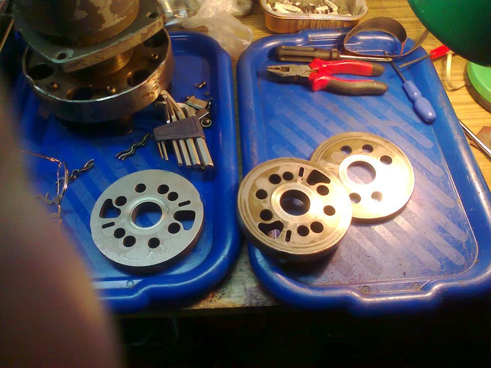 Единственное что при сборке мог перепутать.... )))))) ВВЕРХ ногами имеется ввиду что? Плоскости? Если плоскости . То повлиять не должно. Вот если один эксцентриковый ( я их кулачками зову) кулачек относительно другого крест накрест не поставил тогда да. Но в этом случае пластины бы болтались. А подкладки в этом случае привели бы к поломке пружины и давлению ноль. Потом скосы на пластинах навстречу вращению стоят? на фото видно что на встречу. Аможет одну пластину и проморгали. Все равно надо проверять.
