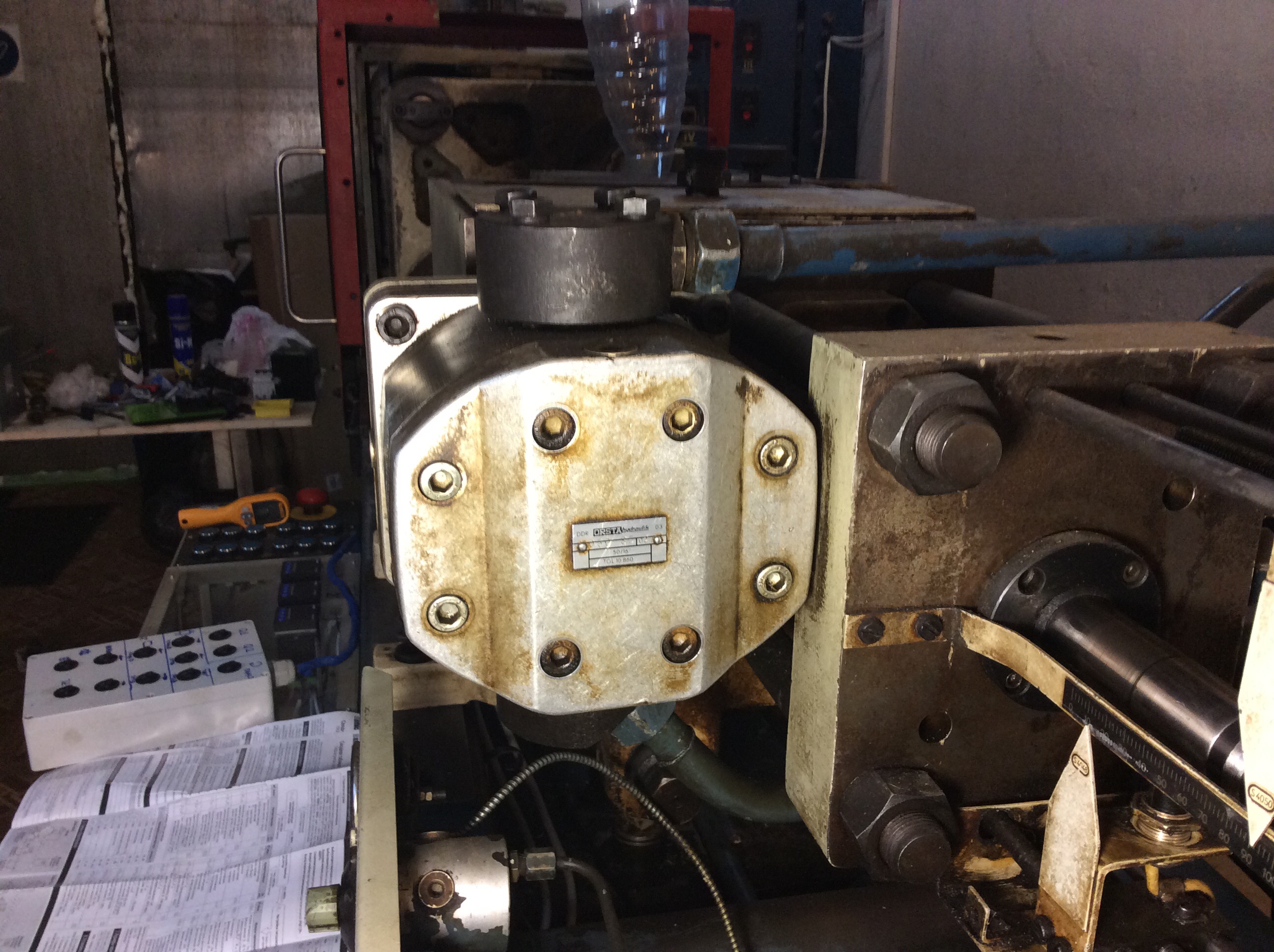 А пока попрошу вернуться к вопросу гидромотора пластикаци. Напомню: Шнек упирается в недогретый материал и стоит. До 6 МПа гидромотор держит давление, если давление поднять, то при пластикации оно проседает до 6МПа. Сейчас выложу запрошенные фото гидромотора. Дренажа там нет. Со всех сторон просмотрел. Только вход и выход.