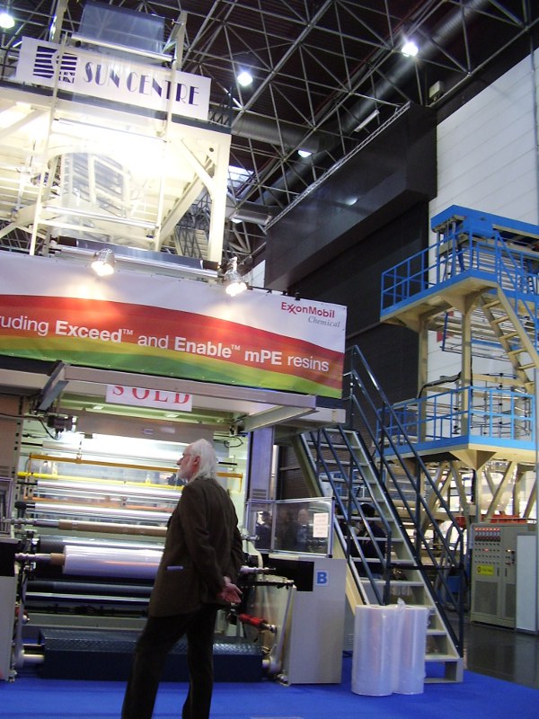 Пленочные экструдеры Bandera и представленный на фото в прошлом сообщении убили меня наповал.5-7 слойная пленка, производительность 1000 кг/час,скорость экструзии 86 м/мин. Вспомнилось производство п\э рукавной пленки с которой я начинал. Небо и земля.