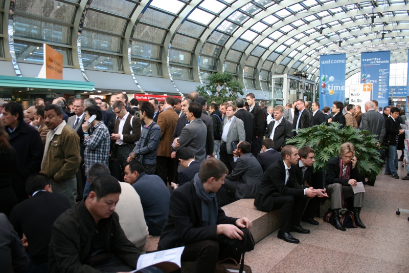 2 перелета и примерно 12 часов в дороге и мы на месте – Германия. Как и у многих вставал вопрос- где жить? Используя прошлый опыт, забронировали отель в Кельне(Barcelo Cologne City Center 4), номер на двоих всего 215 евро/сутки(включен завтрак, если завтрак убрать то около 150). Так же сориентировали наших коллег из Москвы на этот отель. Добираться из Кельна до Дюссельдорфа примерно 1-1,5 часа в зависимости от выбранной электрички. Существуют 2 основных типа: обычные и скоростные(ICE). Стоимость проезда в одну сторону 18.5 евро, но при определенной находчивости можно и бесплатно ездить :idea: :D , далее станция метро и по-моему 18 маршрут до Мессе.