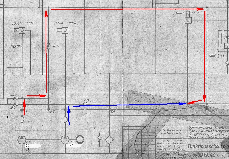 Я конечно уже не помню, но не может подвод управляющего сигнала на VR04 идти обособленным каналом? Ведь этот клапан не прямого действия, а дифференциального и здесь могут возникнуть проблемы при плохой проходимости по управлению.