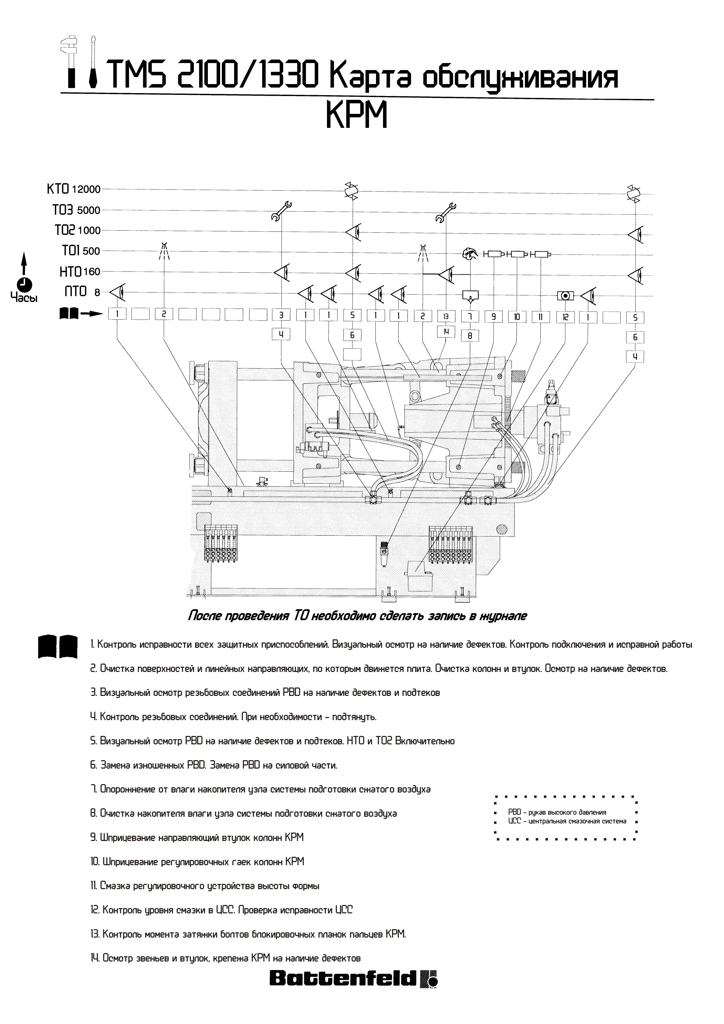 Могу я привести пример. Вот такие самопальные карты раньше делал. По сути ваш инженер - прав +/- при высокой загруженности можно пожертвовать до 5тыс всем ТО, часть спихнуть на младший персонал. Хороший ТПА вообще штука не особо прихотливая. Заливайте хорошее масло, держите в порядке, следите за смазкой и ее содержимым и будет вам дзенMextex писал(а): ↑03 ноя 2020, 21:27Жаль тему не довели до конца. Могли бы привести пример вашего ТО. Что делаете ежедневно, еженедельно, раз в месяц, раз в три и тд. Было бы очень интересно. Задал вопрос гл. инженеру, почему у нас нет ежедневного или хотя бы еженедельного ТО в графике , ответ был таков: 33 ТПА, еле успеваем полугодовое ТО делать. В бригаде 2 слесаря, 2 киповца, сварщик и водитель.