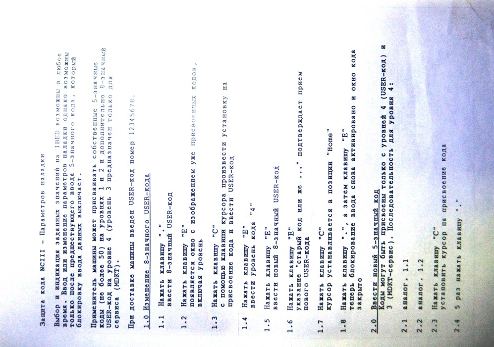 Нет конечно, машина куплена по дешёвке, начальство дало телефон наладчика, который раньше её обслуживал. Он и сказал мне пароль 17935 с 4-тым уровнем. Но в окно управлением паролями не попадаю.dedaborja писал(а):Инструкция есть на ввод паролей? Она отдельно в конверте "Для руководства завода". Если нет -выложу (где-то уже была здесь года три назад). Если память не изменяет, сначала старый затереть надо.