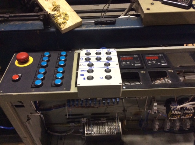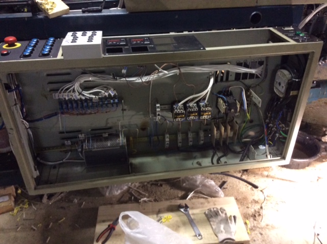 Из старого оставил только входную группу с аутентичным рубильником и пускатели (мотор + 3 зоны нагрева - они были уже не родные). Пускатели прочистил внутри и зачистил контакты.