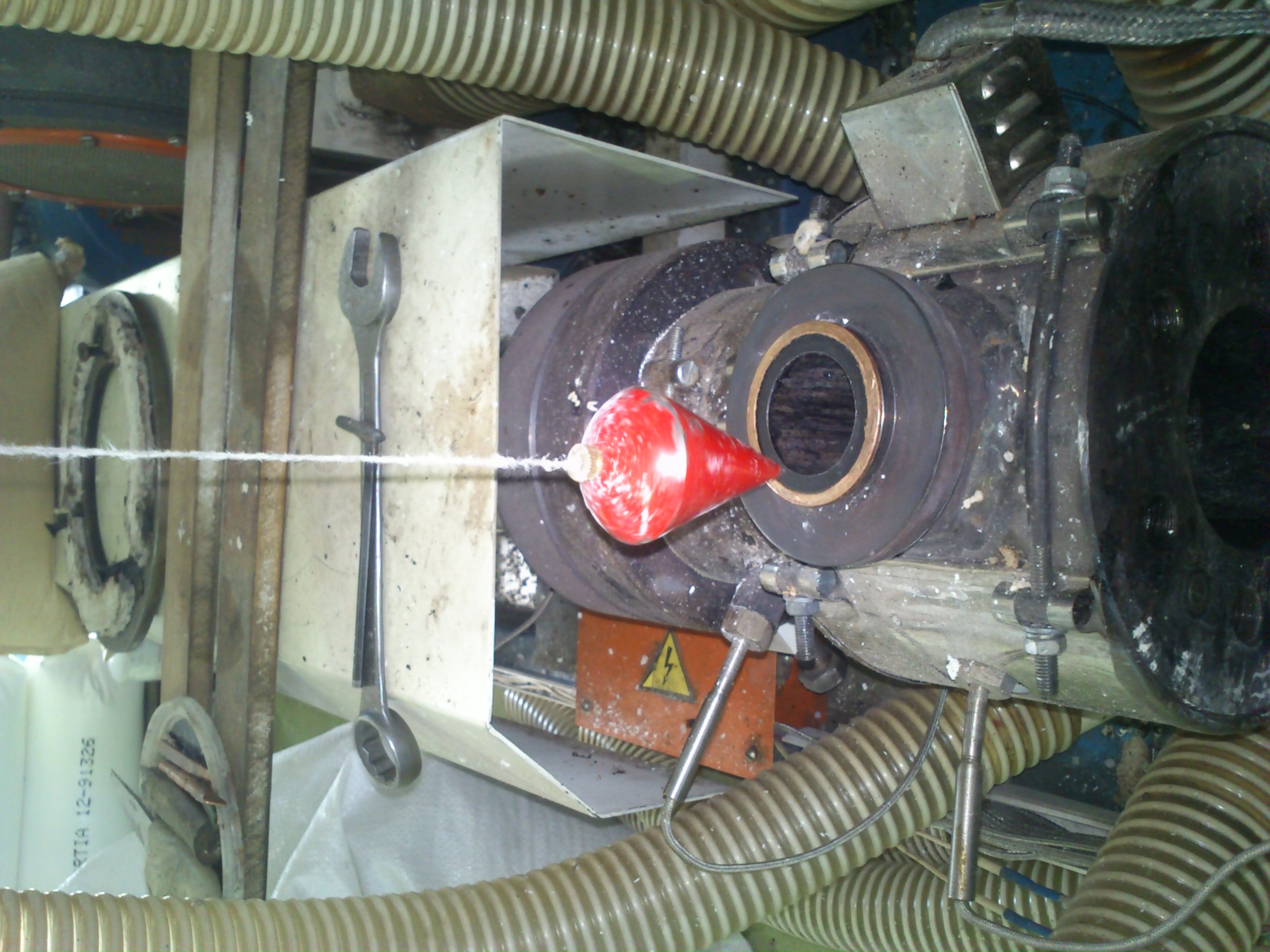 С начало много мела. 70% сырья 30% мела. Температура с бункера 180,195, 205,210,205 или последние на 5 больше. Когда мела больше будешь делать, больше на шнек оборотов , меньше на вытяжку. ждешь пока выровняется. Не поможет разбираешь фильеру, чистишь пастой фильерной, потом смазкой силиконовой. Переходник должен быть желательно из нержавейки, хорошо ввнутриотполирован. тоже чистишь. Собираешь аккуратно фильеру. Разогреваешь еще раз подтягивай все болты. Проверь шланги на обдуве, могут пропускать и обдувать фильеру с одной стороны. Проверь горизонтальный уровень фильеры, такое тоже бывает.