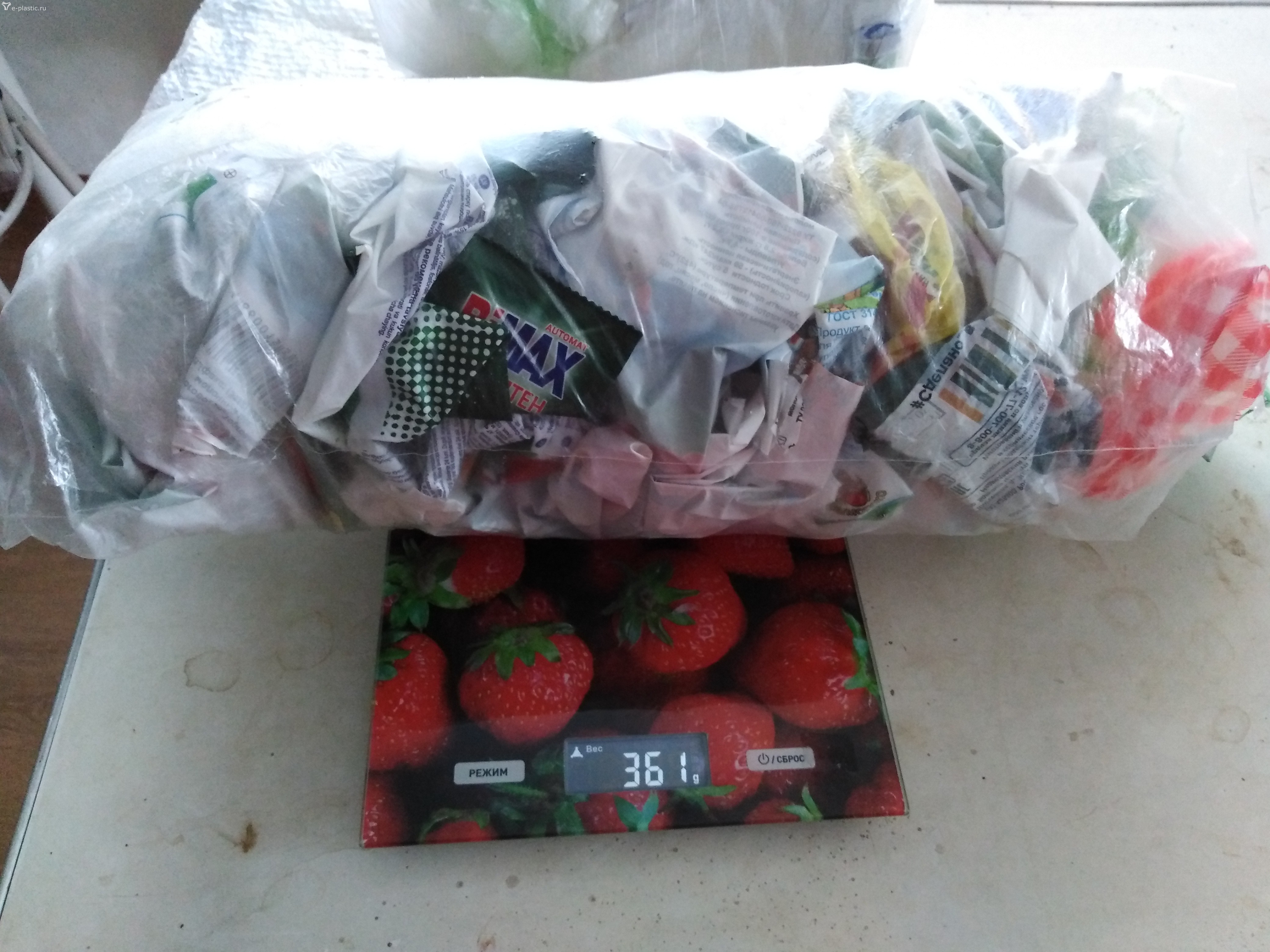 Всю бумагу, упаковочный картон, вплоть до билетов на транспорт, складывала отдельно, чтобы отдать людям, у которых есть баня, на растопку. Получилось 3,287 кг