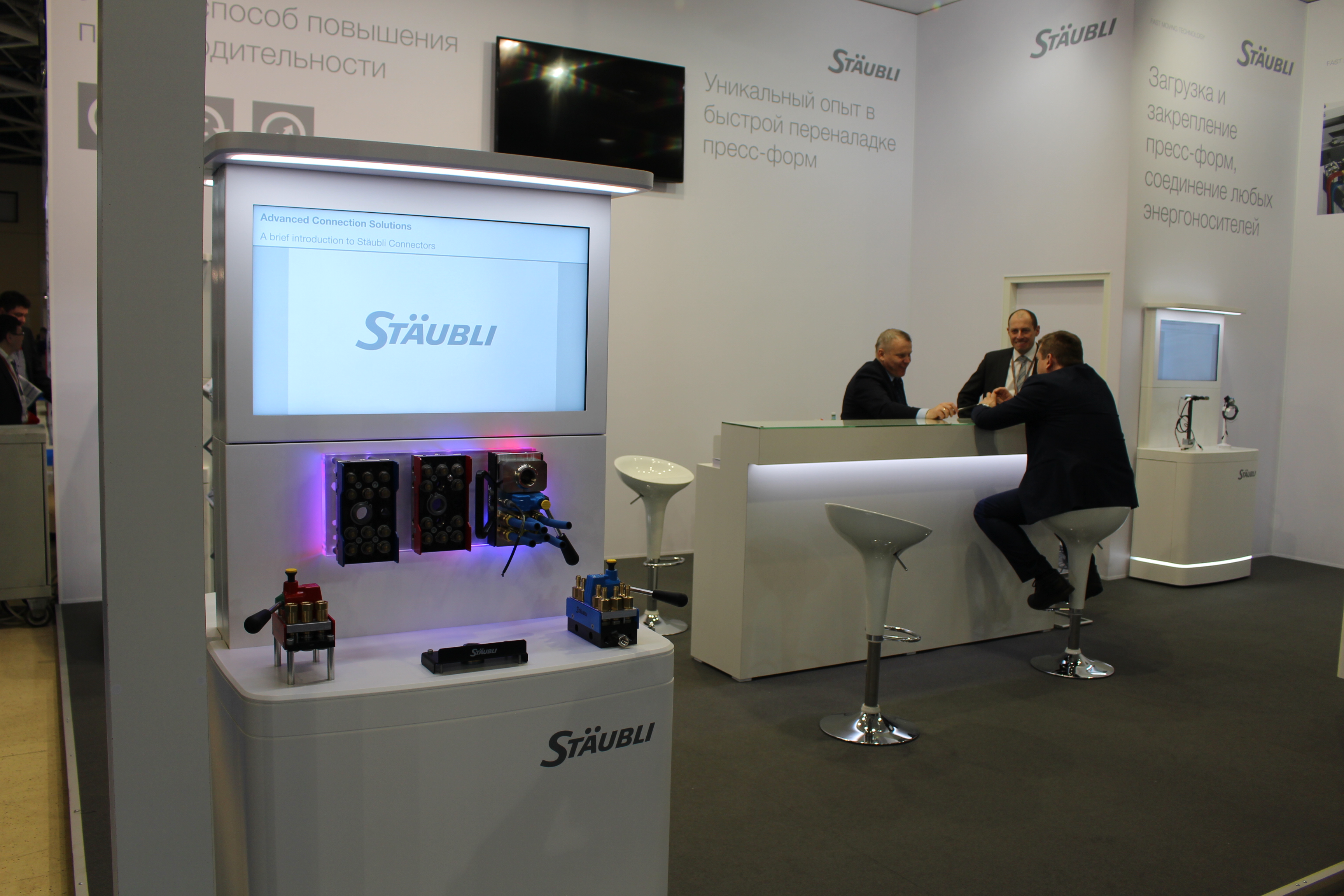 На стенде Солан-Д можно было видеть двух роботов, пытающихся переложить деталь с места на место - для обоих попытки оказались тщетны