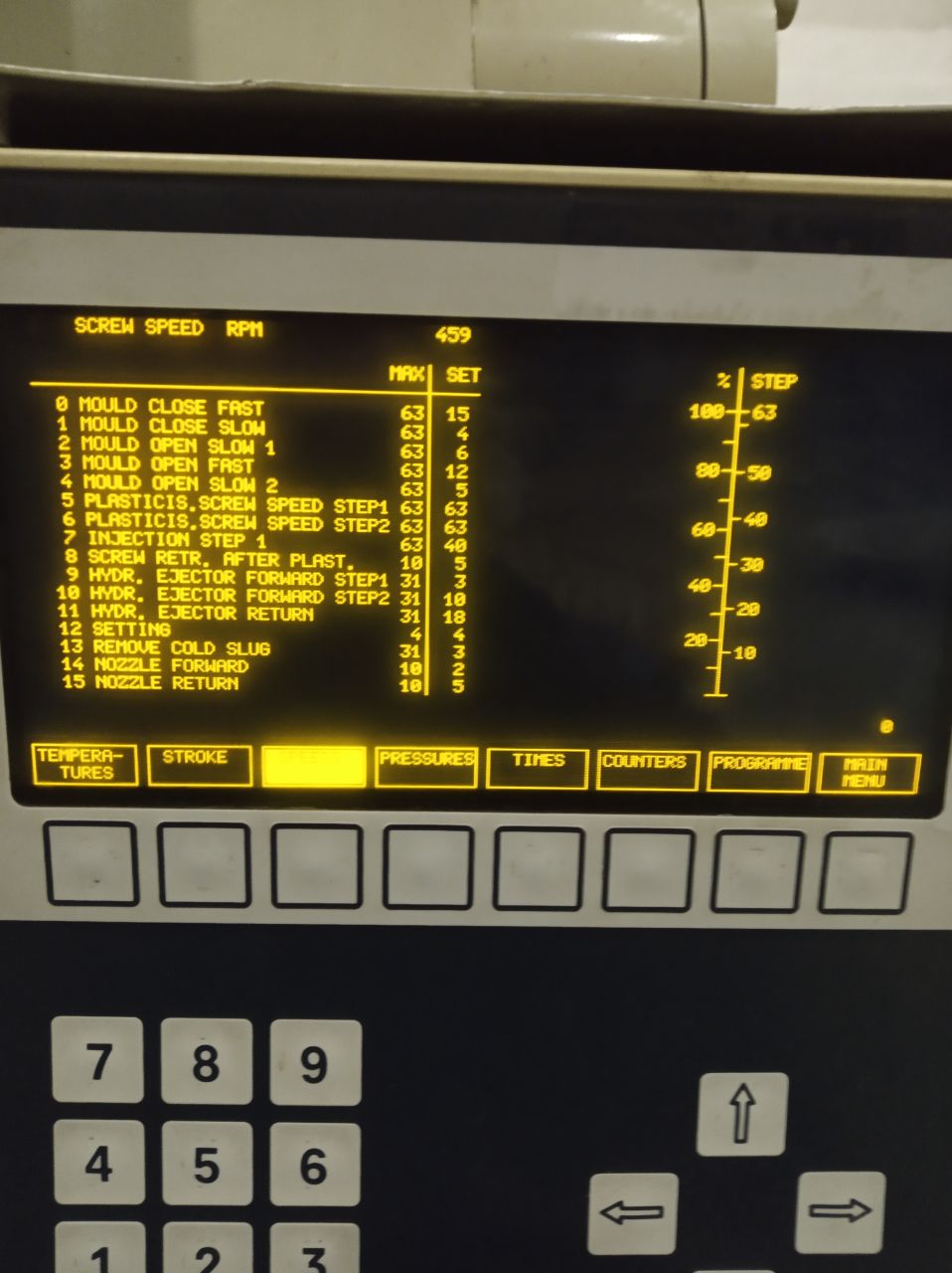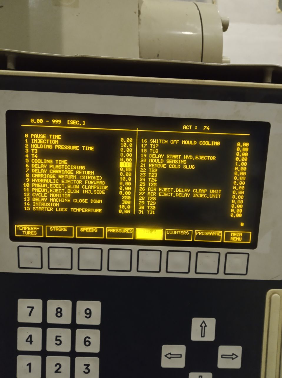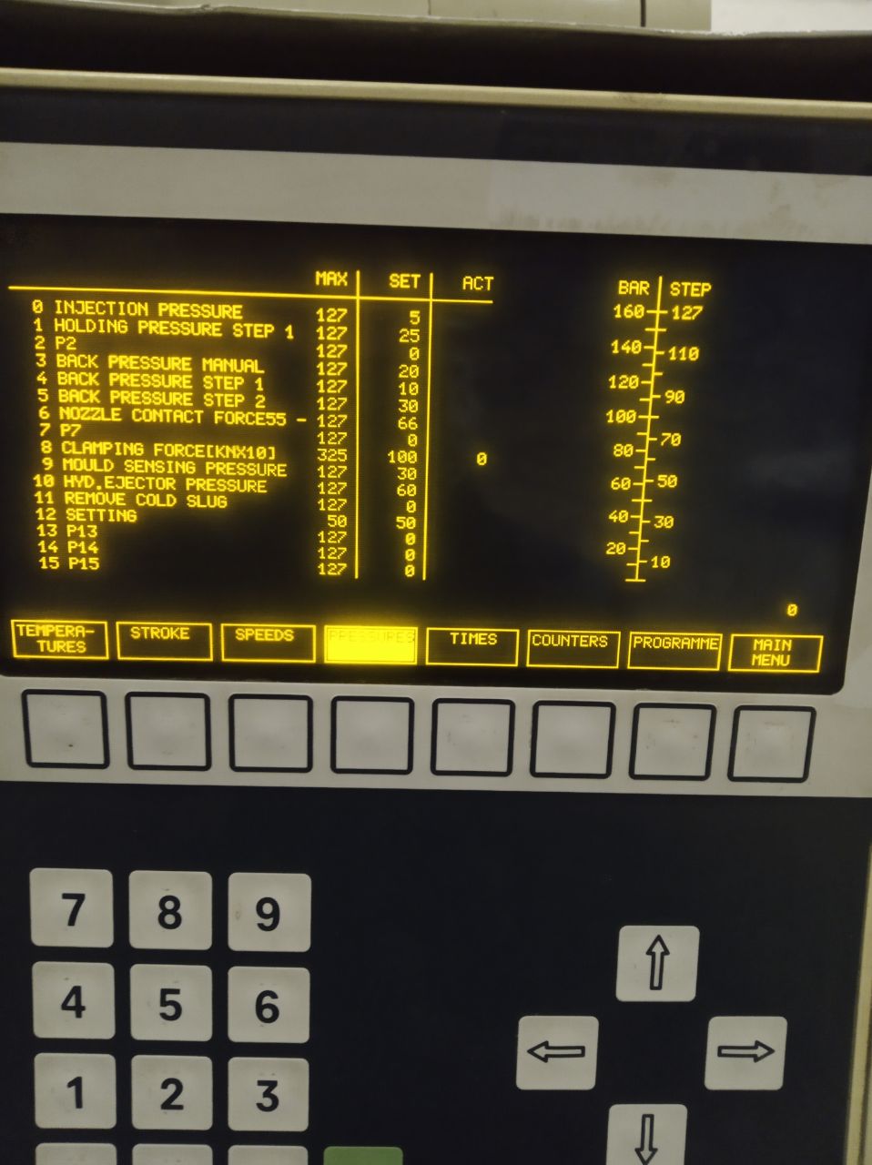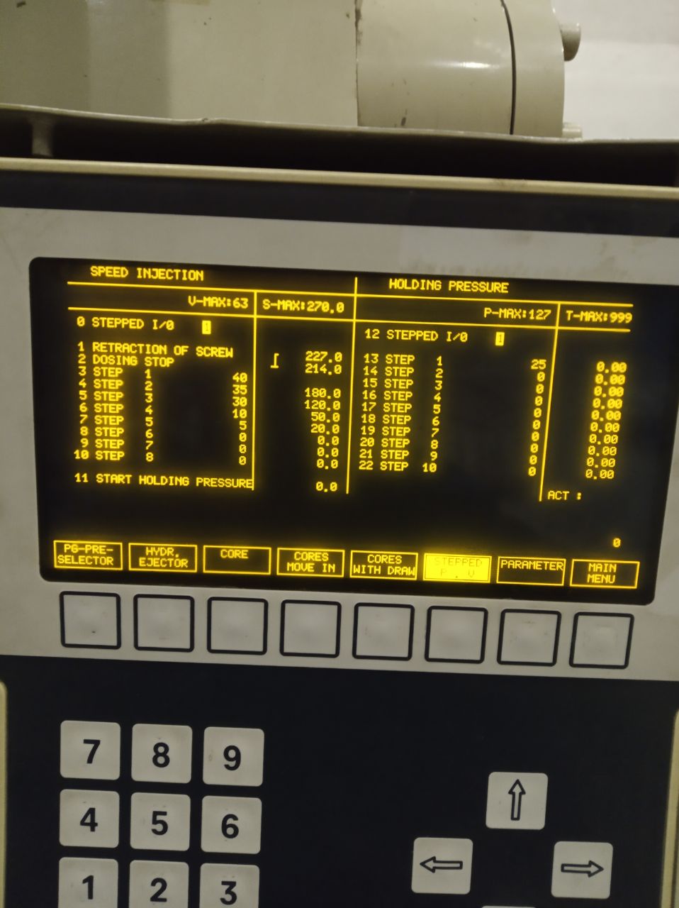 Кажись ещё одну несуразность нашел. Допустим в меню программы вы поставите =1 в поз. 8 (переход на давление выдержки по пути), но смотрим профили пошаговой отработки. Там давление выдержки 25 Бар, зато время действия этого давления =0. Фактически его нет. Если форма объемная, то остывать будет медленно (водяной рубашки нет?), а, значит, желательно подержать под давлением, ну, не меньше секунд 15. В меню пути заведите в поз. 21 хотя бы 2...3 мм, не помешает, хотя это можно экспериментально установить.